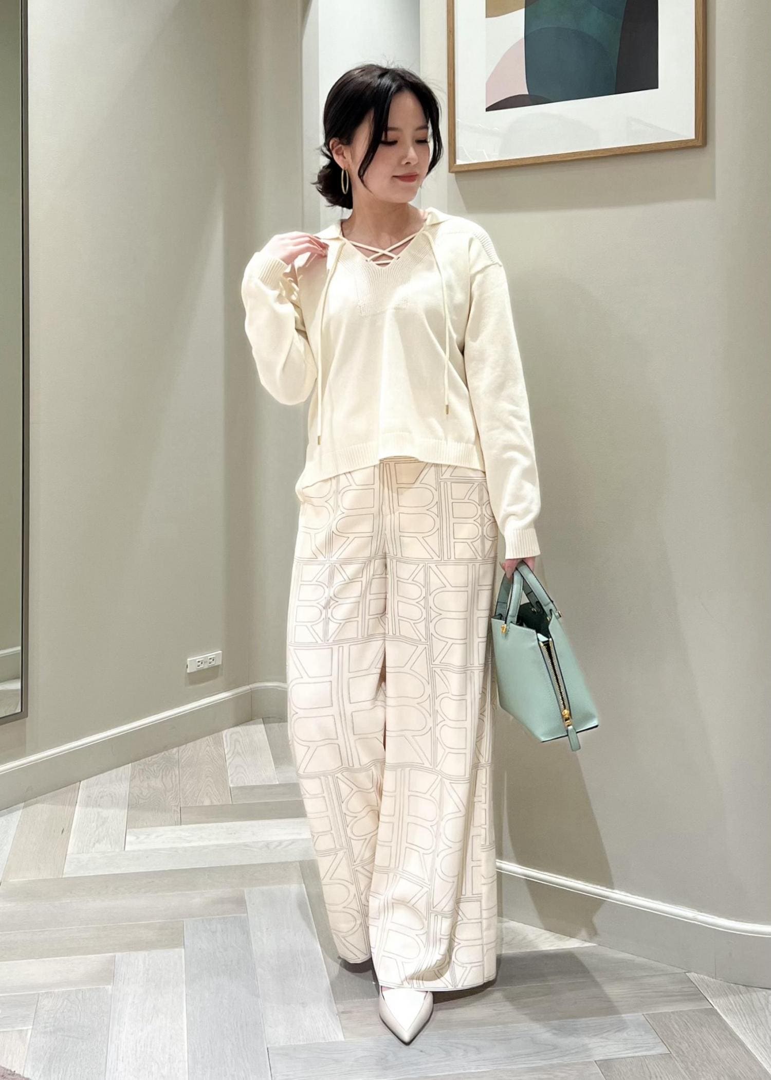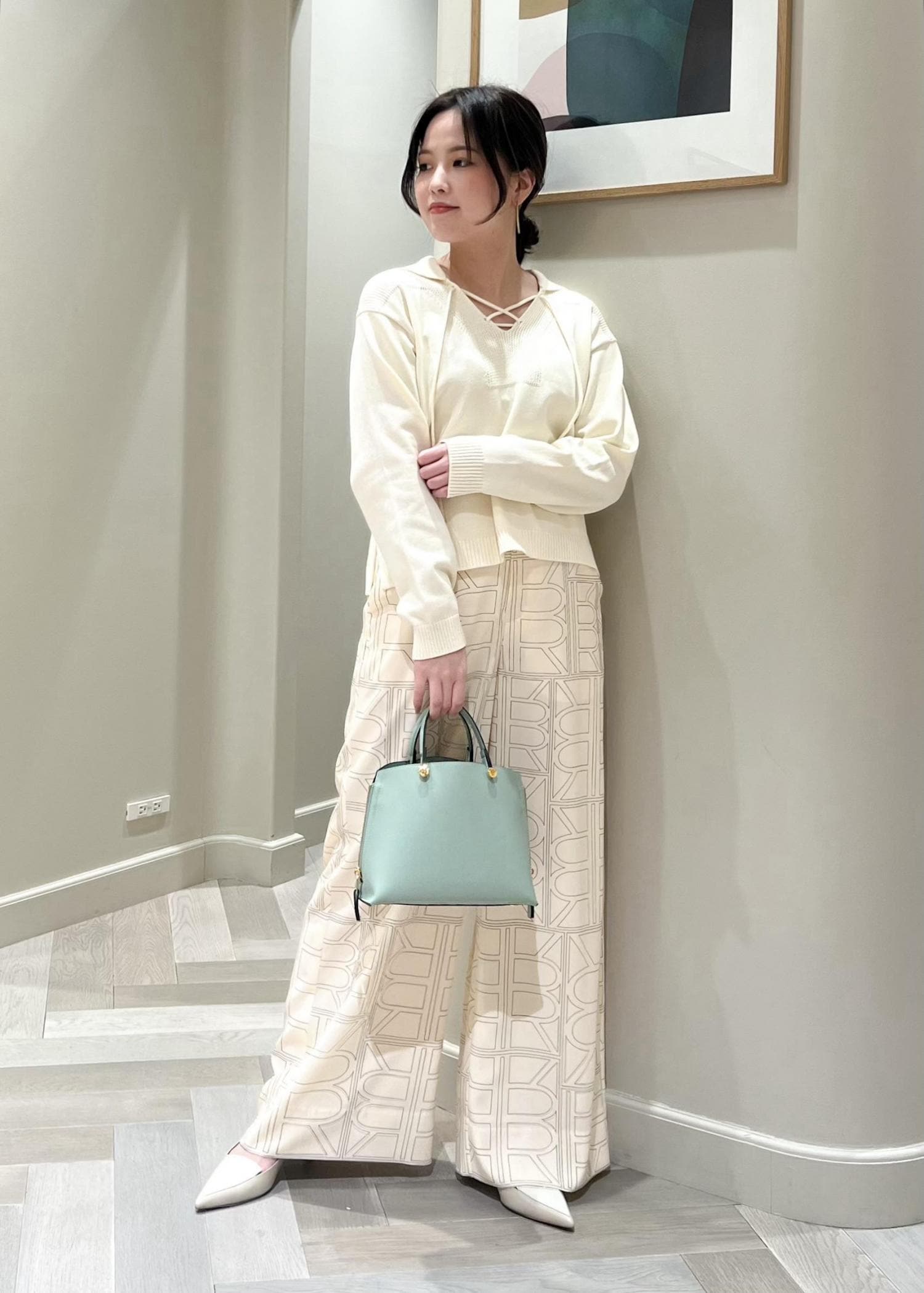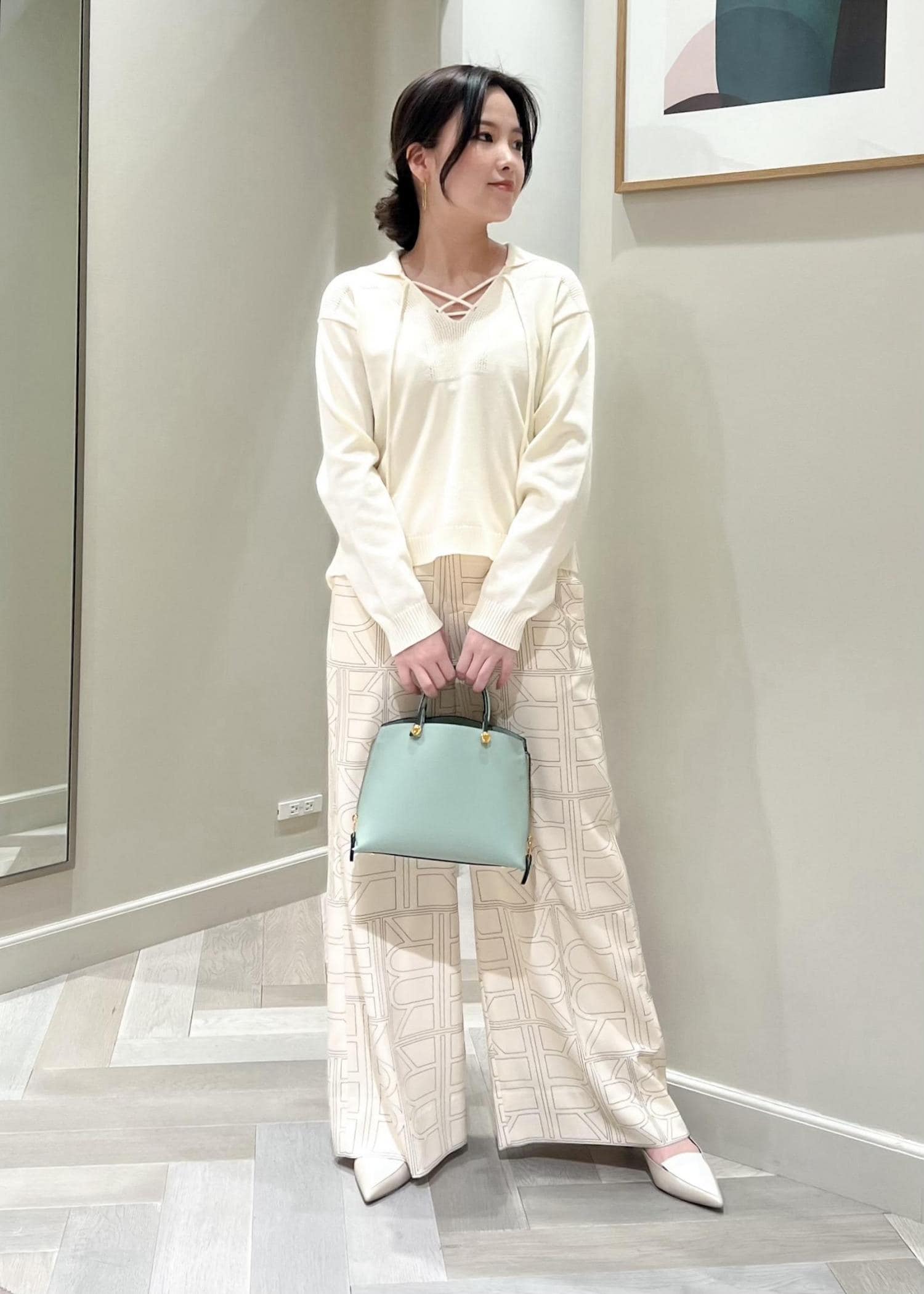アウトレットROPÉモノグラムプリントワイドパンツキナリ / 36¥14,850レビュー36サイズ着用でウエストピッタリ。