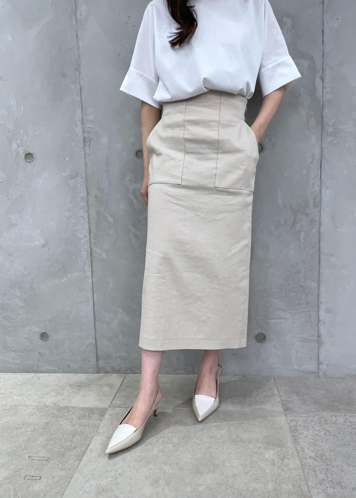 リネンストレッチポケット付きタイトスカート