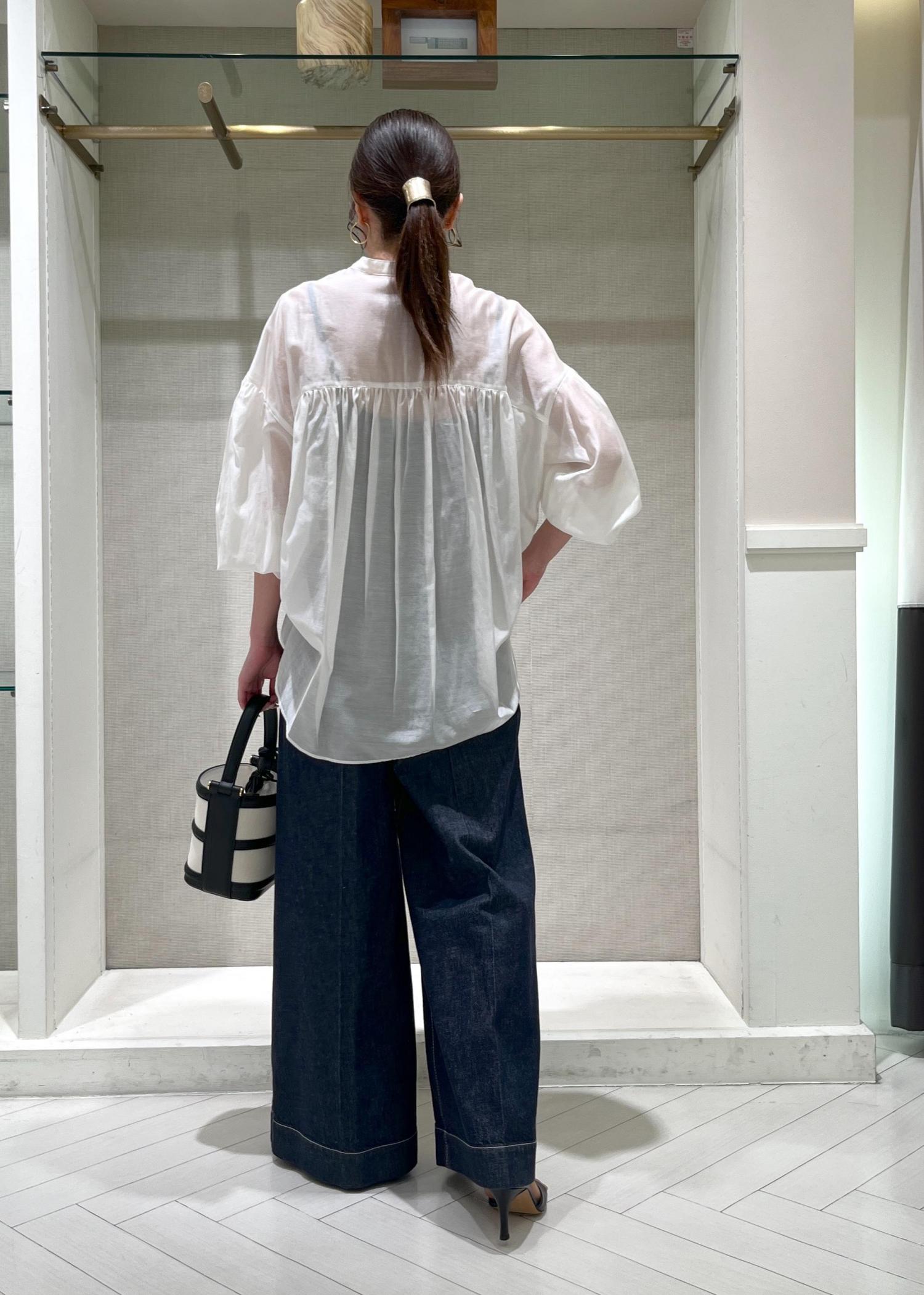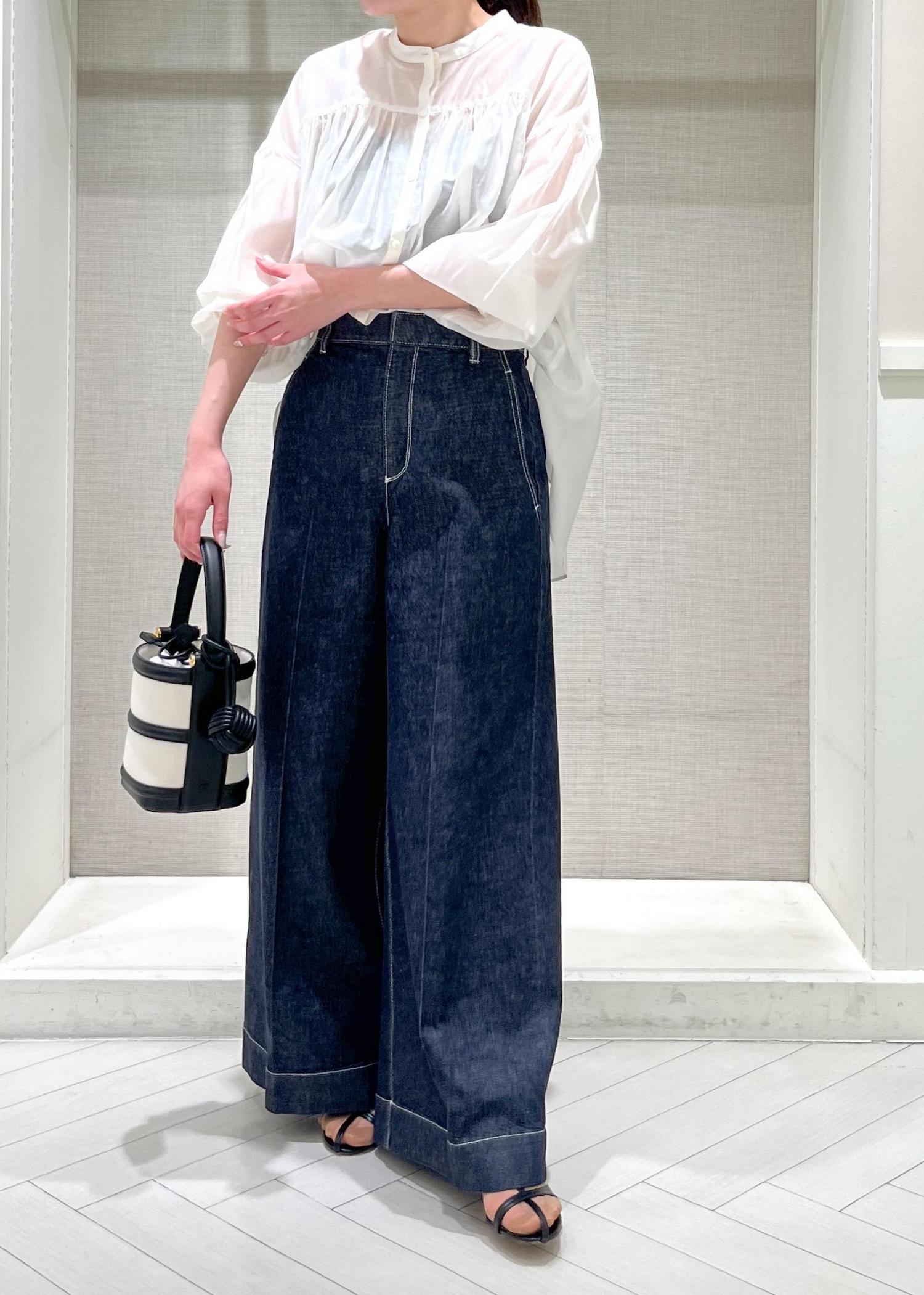 シアーブラウスにバギーデニムを合わせた