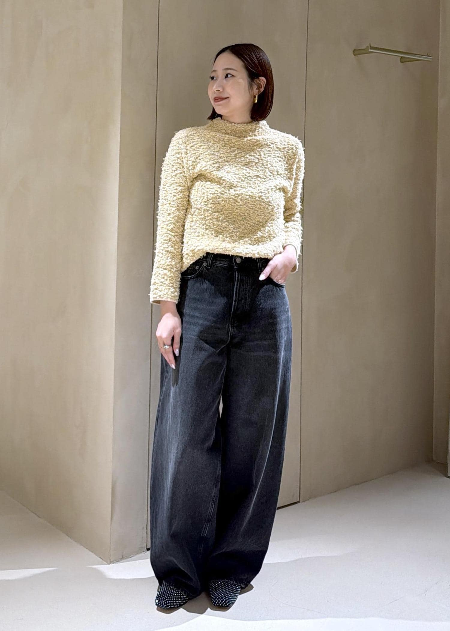 カラーも柔らかいので馴染みも良くシンプルなコーディネートの際に合わせると華やかさが増します♪