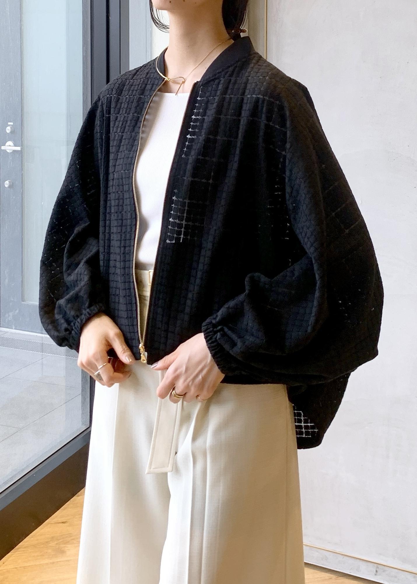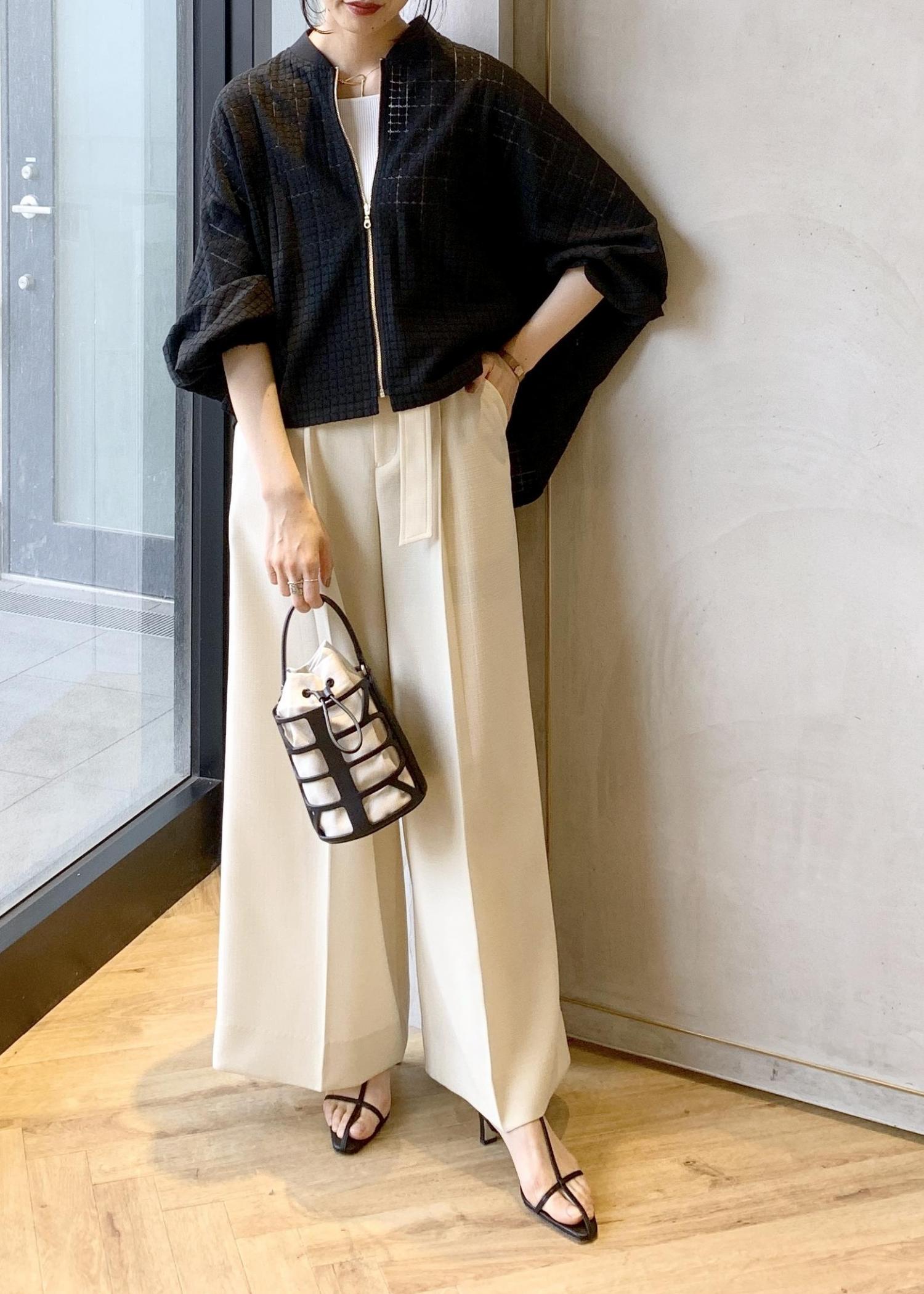 ブルゾンはどうしてもカジュアルでスポーティなテイストになりがちですが、このブルゾンはレース素材でラフすぎずで大人な雰囲気も感じるので、きれいめなスタイリングにもばっちり合わせやすいです◎