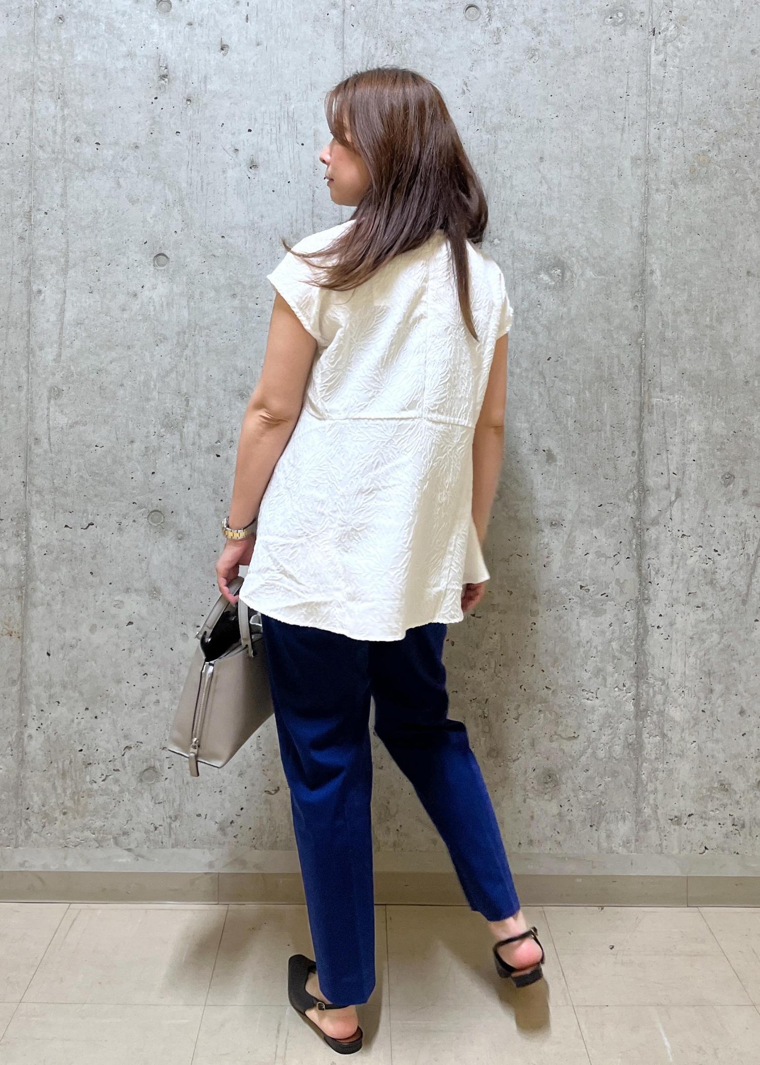 ペプラム切り替えにし裾に前後差があるので小柄な方にもおすすめのトップスです。 -