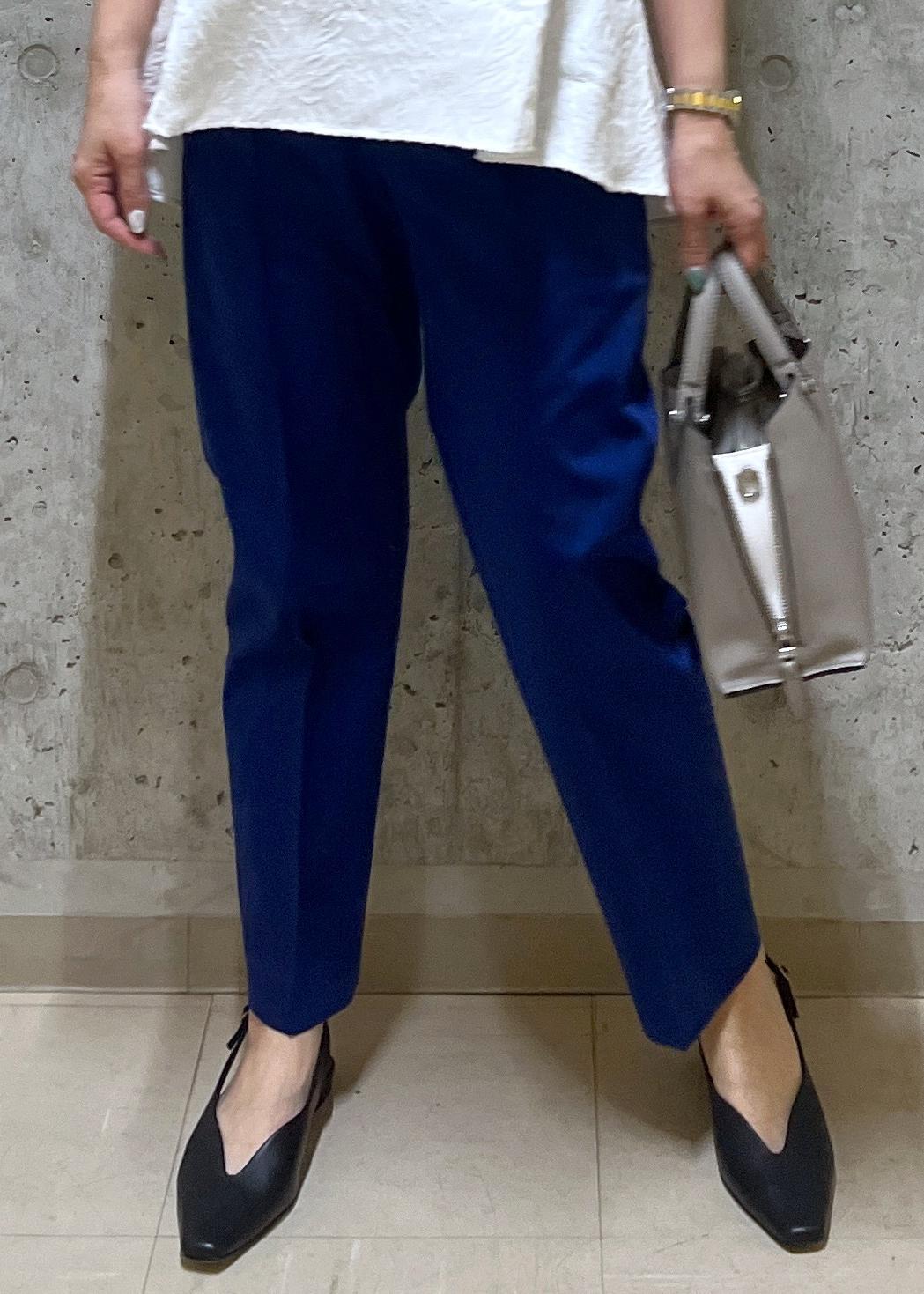 シンプルになりがちなパンツスタイルは、トップスにデザイン性のあるアイテムを合わせて普段の通勤スタイルも可愛くオシャレにしました。