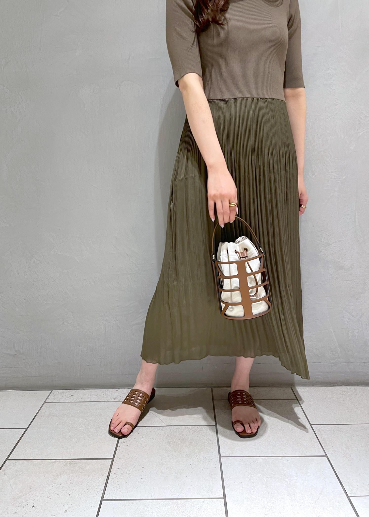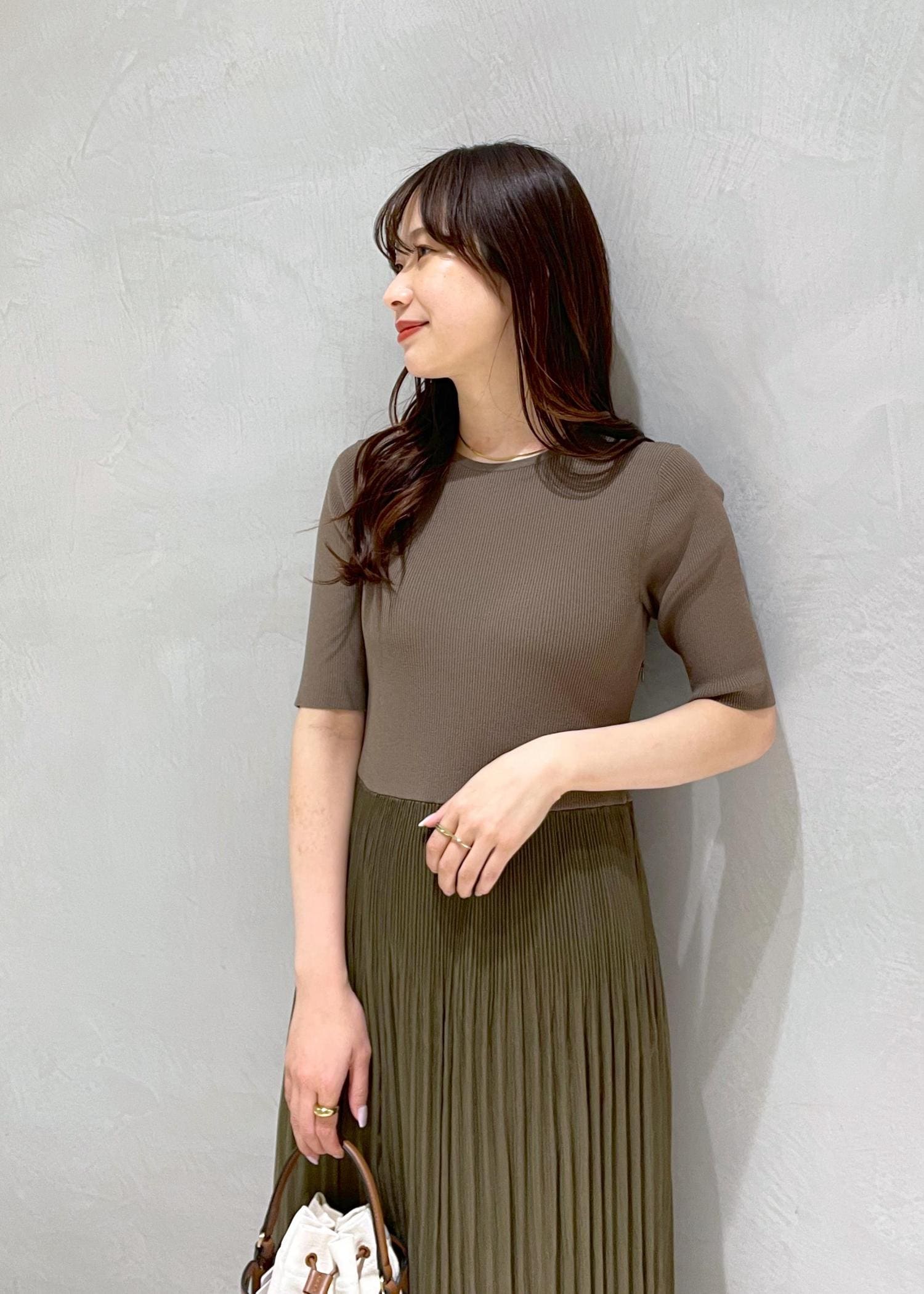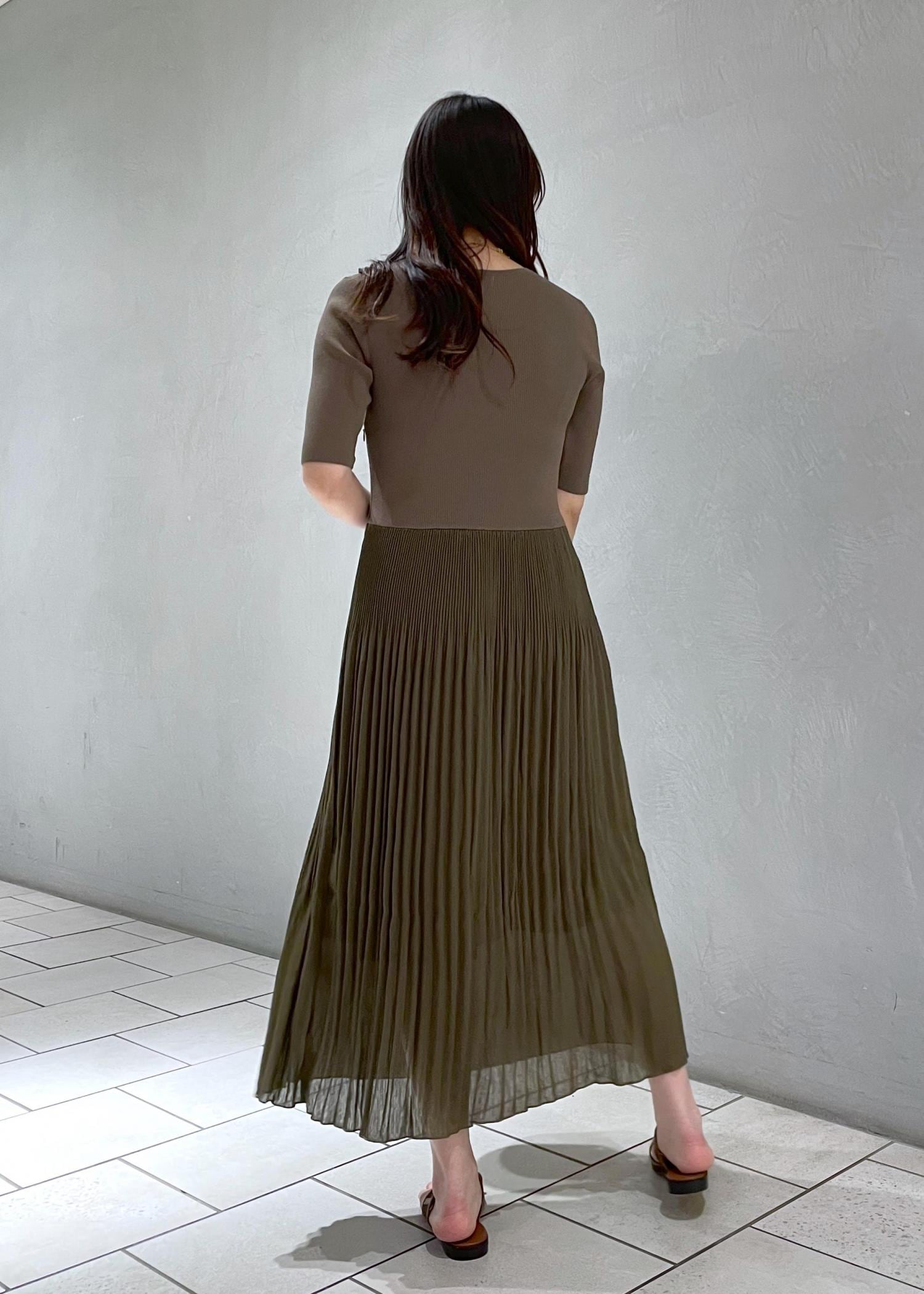 アウトレットROPÉニット布帛コンビプリーツワンピースカーキ / 36¥19,250レビュー161cmで36サイズを着用。