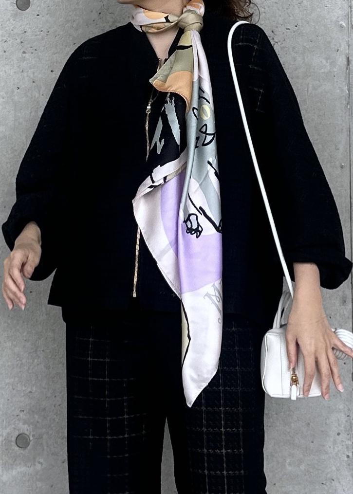 ROPÉロートレックグラフィカルスカーフ【雑誌掲載】ラベンダー / F¥17,600レビュー大判のスカーフなので、見頃やウエストに巻く事も出来ます。しっかり存在感がありシンプルなコーディネートのアクセントにピッタリです。