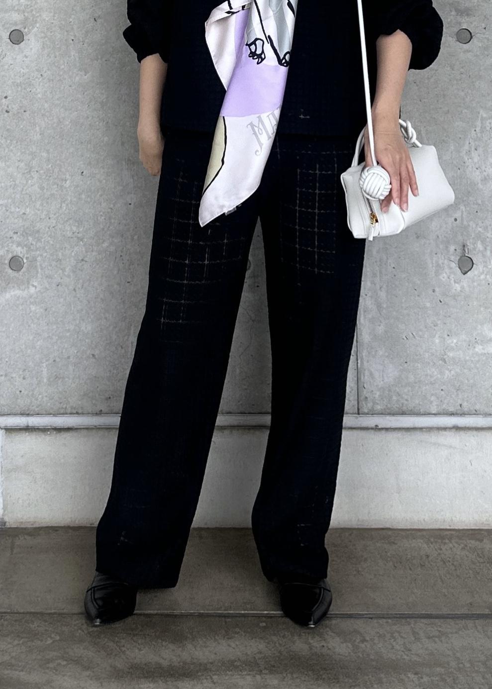 甘くならないモダンな幾何学レースなのでコーディネートしやすく着回ししやすいです。