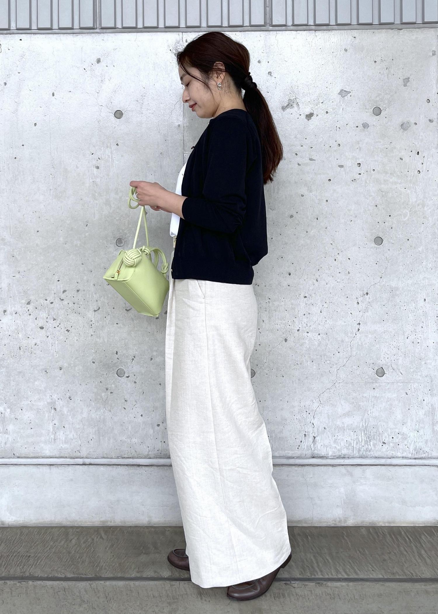 フラットシューズを履きたかったので、着丈は3センチカットしました。