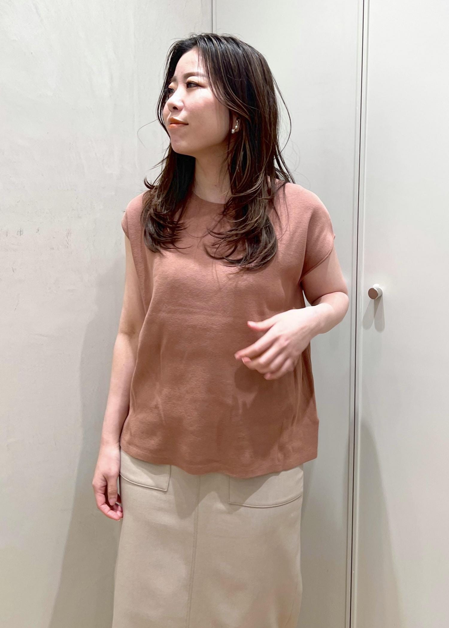 リネン混でない定番のポケ付きスカートを持っている方には多少タイトに感じるかもしれません。