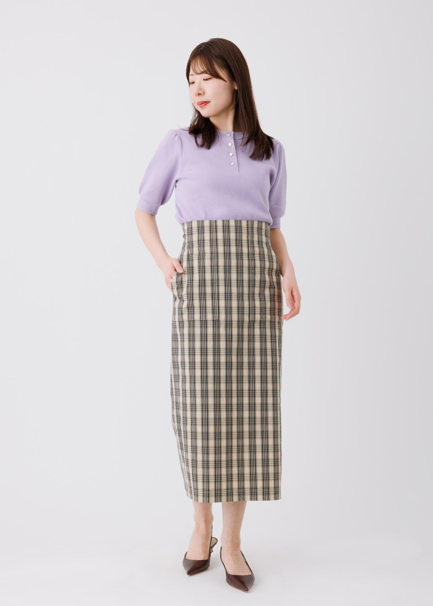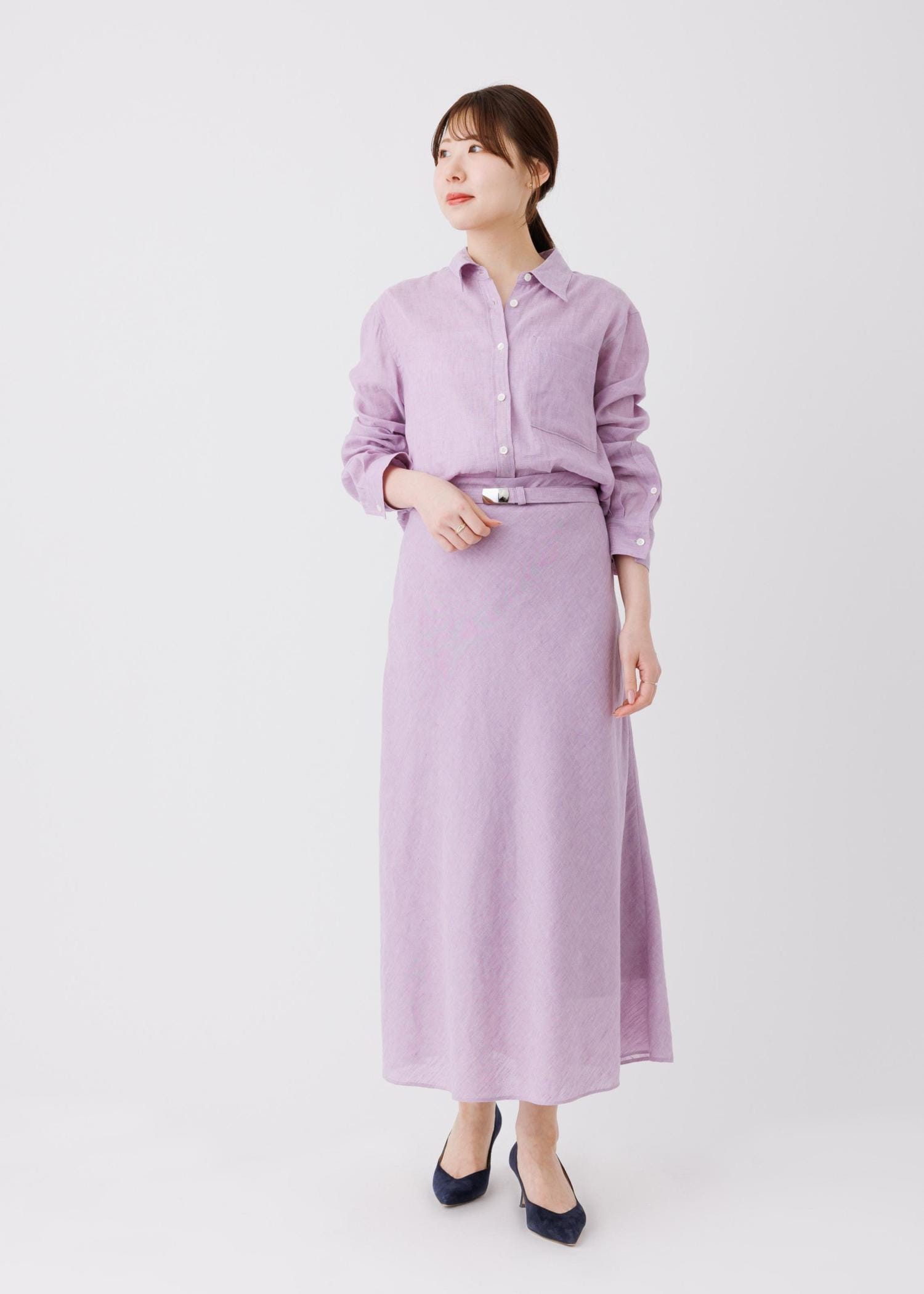 二の腕をカバーしてくれる立体感のあるトップスと、スタイルアップ間違い無しのリネン素材のタイトスカートも、それぞれオンオフでもお楽しみいただけます!