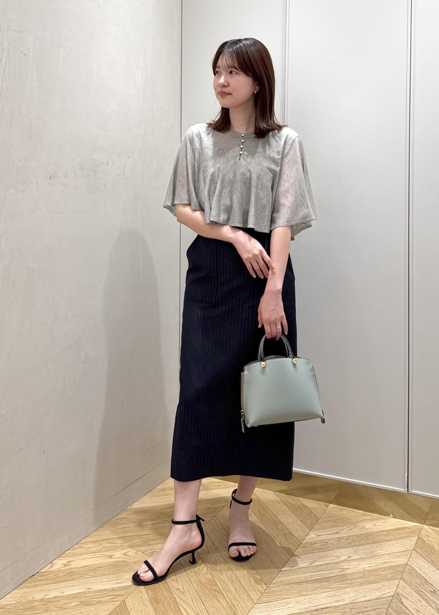 シアー感とフレアデザインで、夏のブラックも涼しげにみえるサマーブラックコーディネートにしました♪