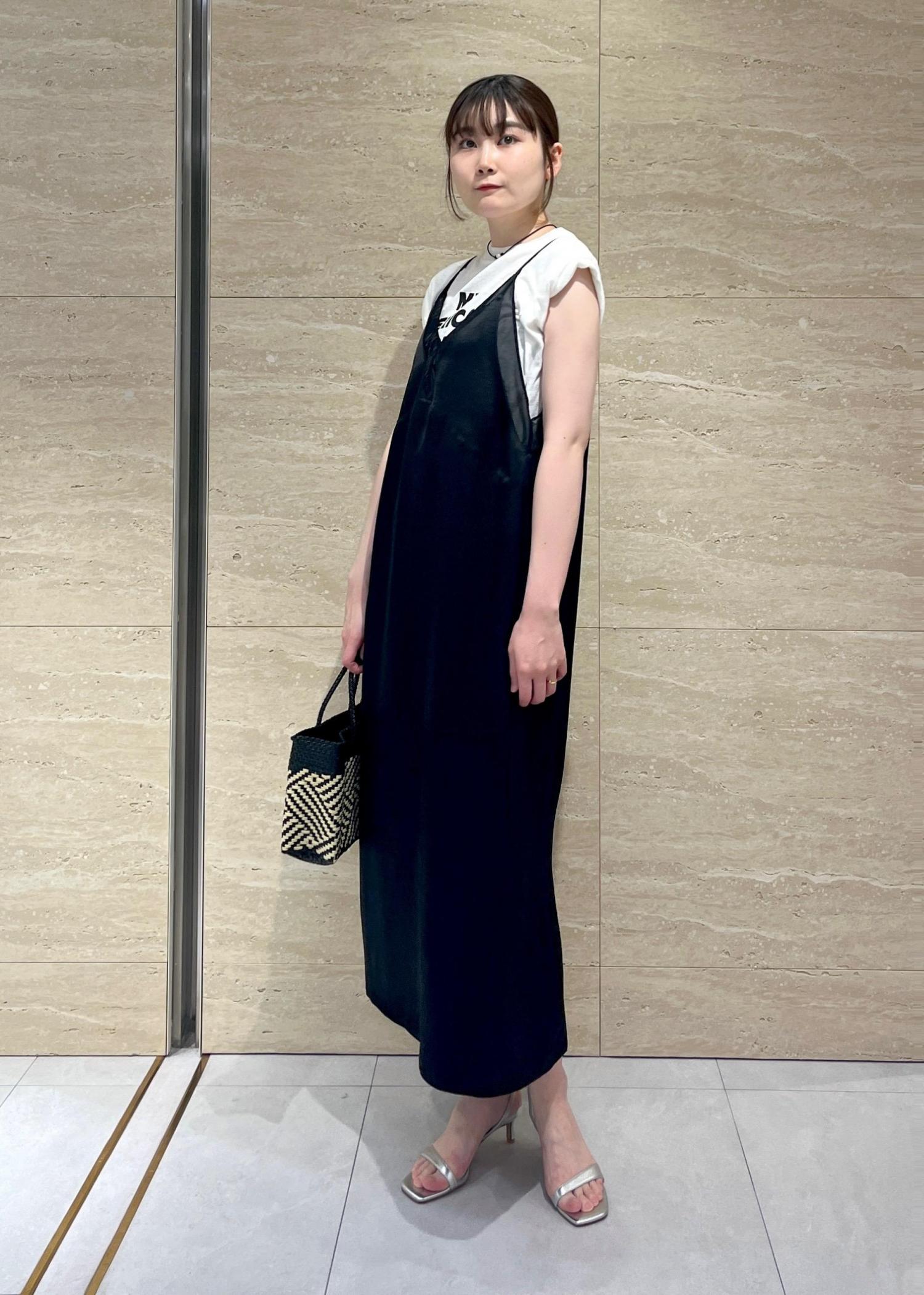 胸元のシアーデザインがポイントで、Tシャツ合わせでもどこかきちんと感も感じるスタイリングに。