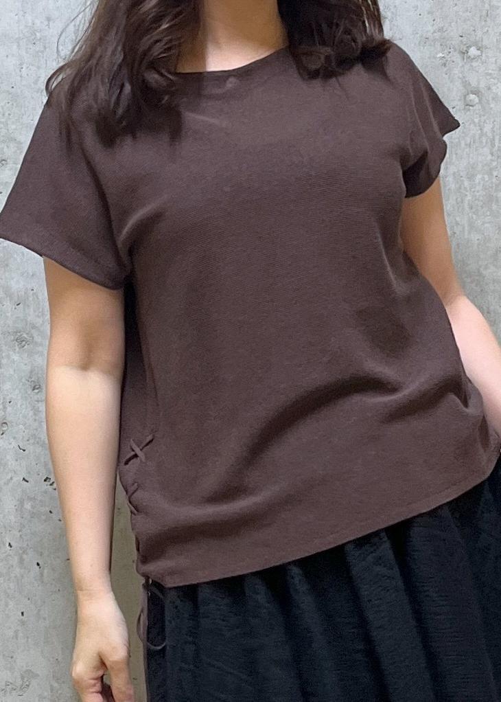 アウトレットROPÉペーパーコットンレースアップニットトップスダークブラウン / F¥5,940レビューペーパーヤーンを使用していてとても軽く通気性が良いです。