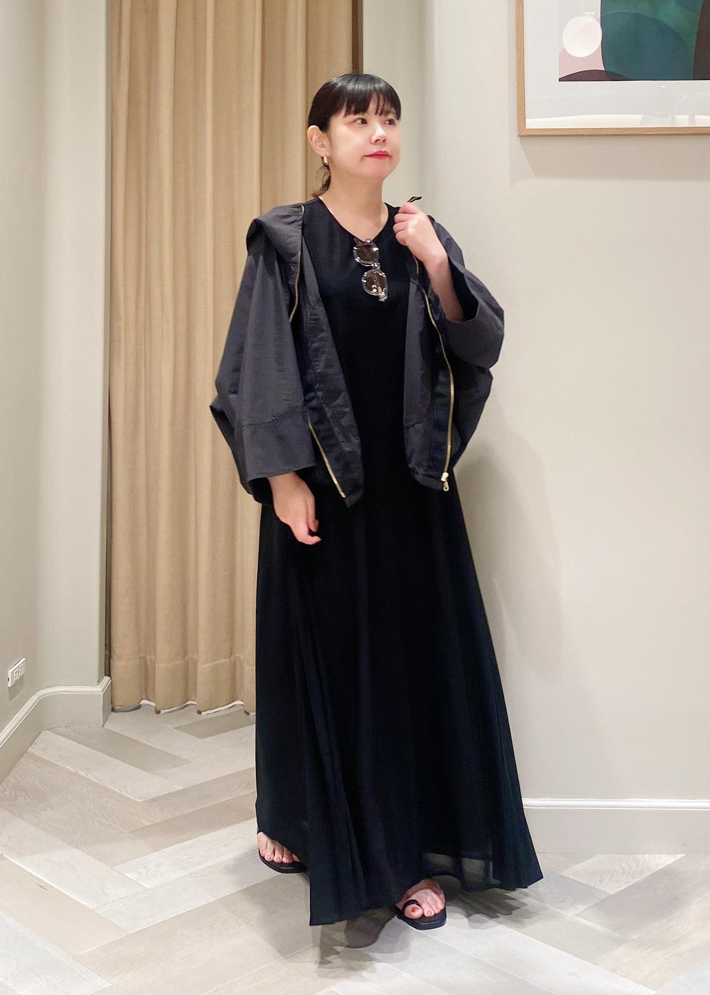アウトレットROPÉ綿ナイロンワッシャーギャザーマウンテンパーカー【メディア掲載】ブラック / F¥15,840レビュー152cmでFサイズ着用