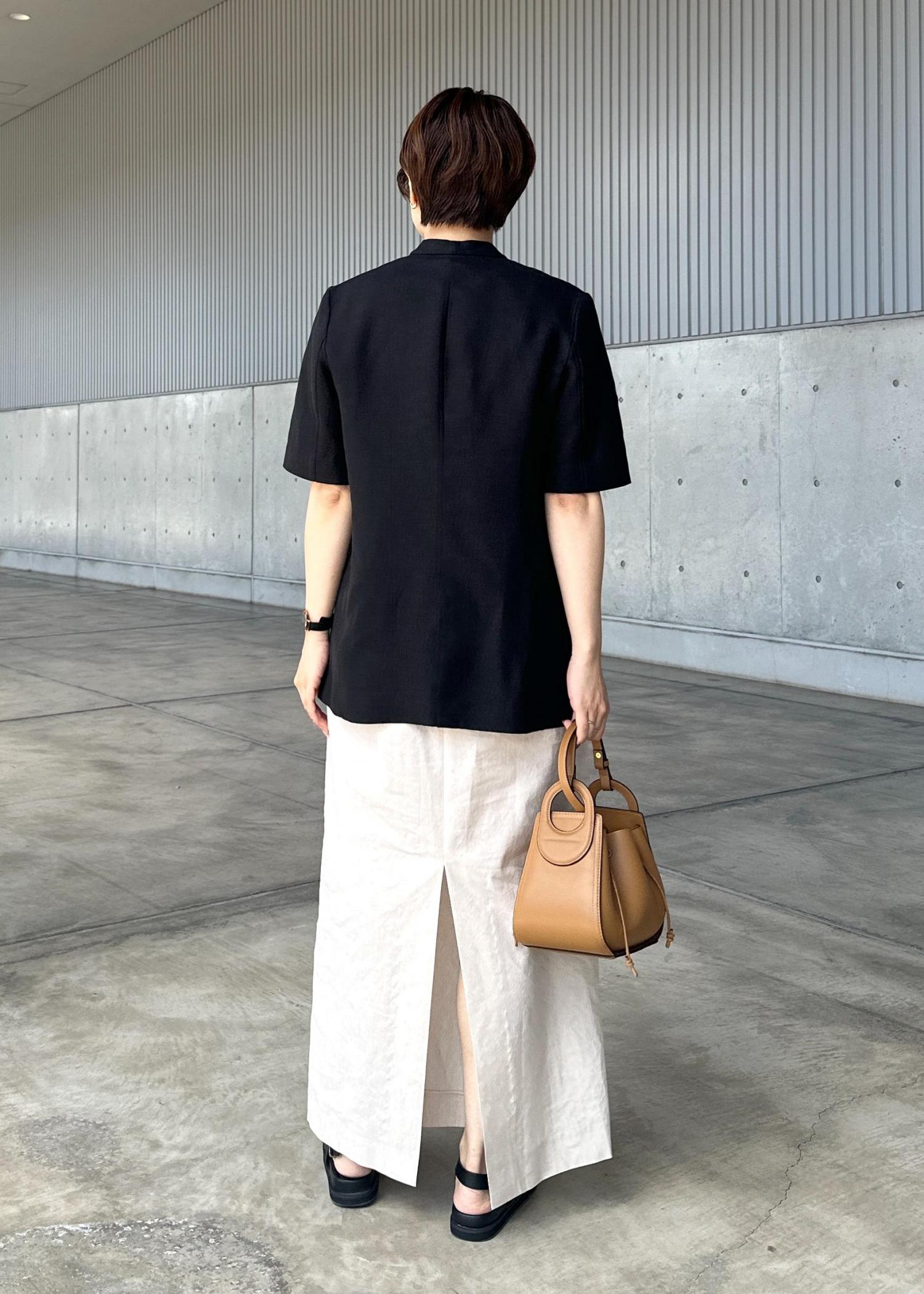 ROPÉリネンハーフスリーブジャケットブラック / 38¥29,700レビュー162センチ 普段ジャケット38、40サイズ