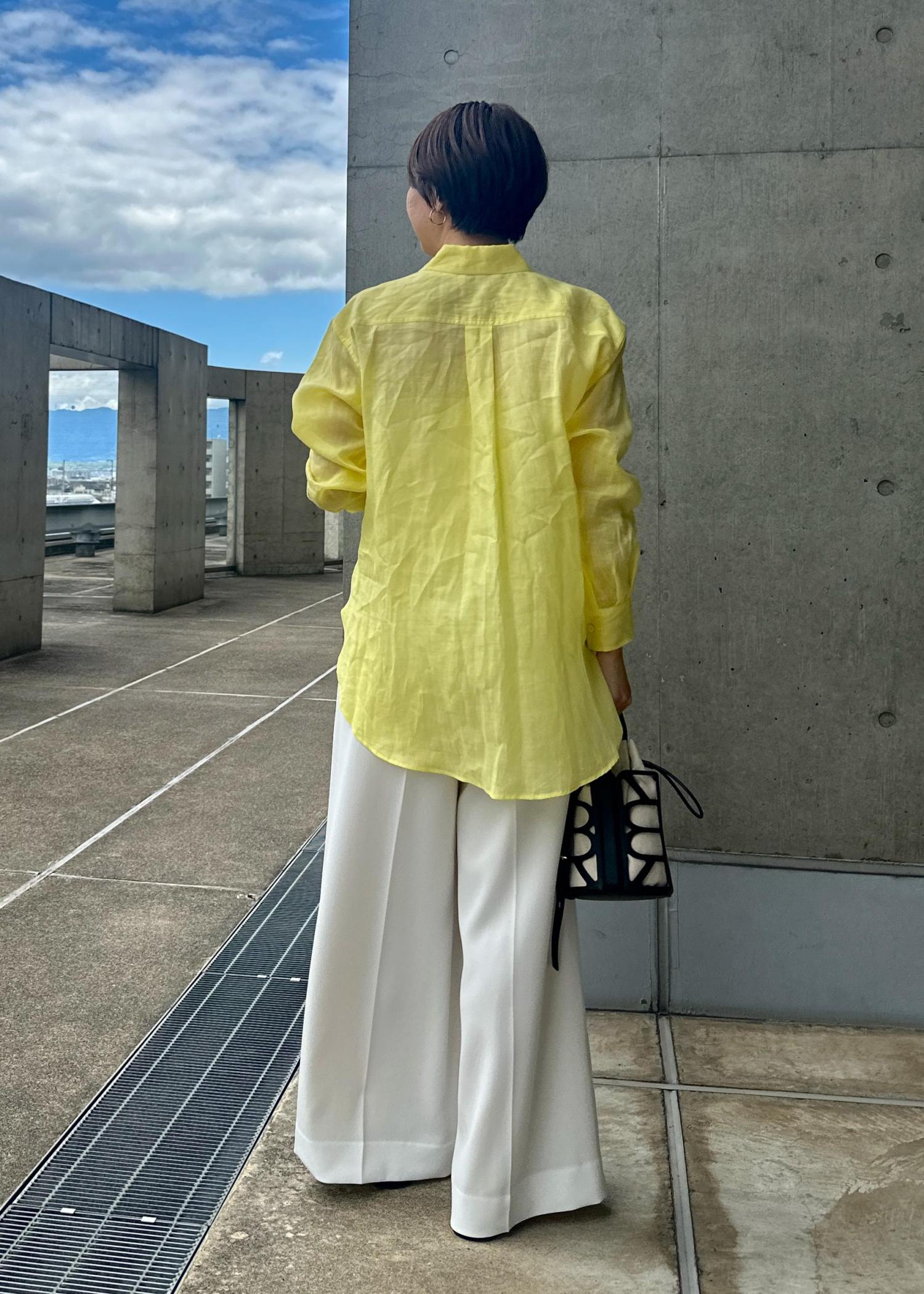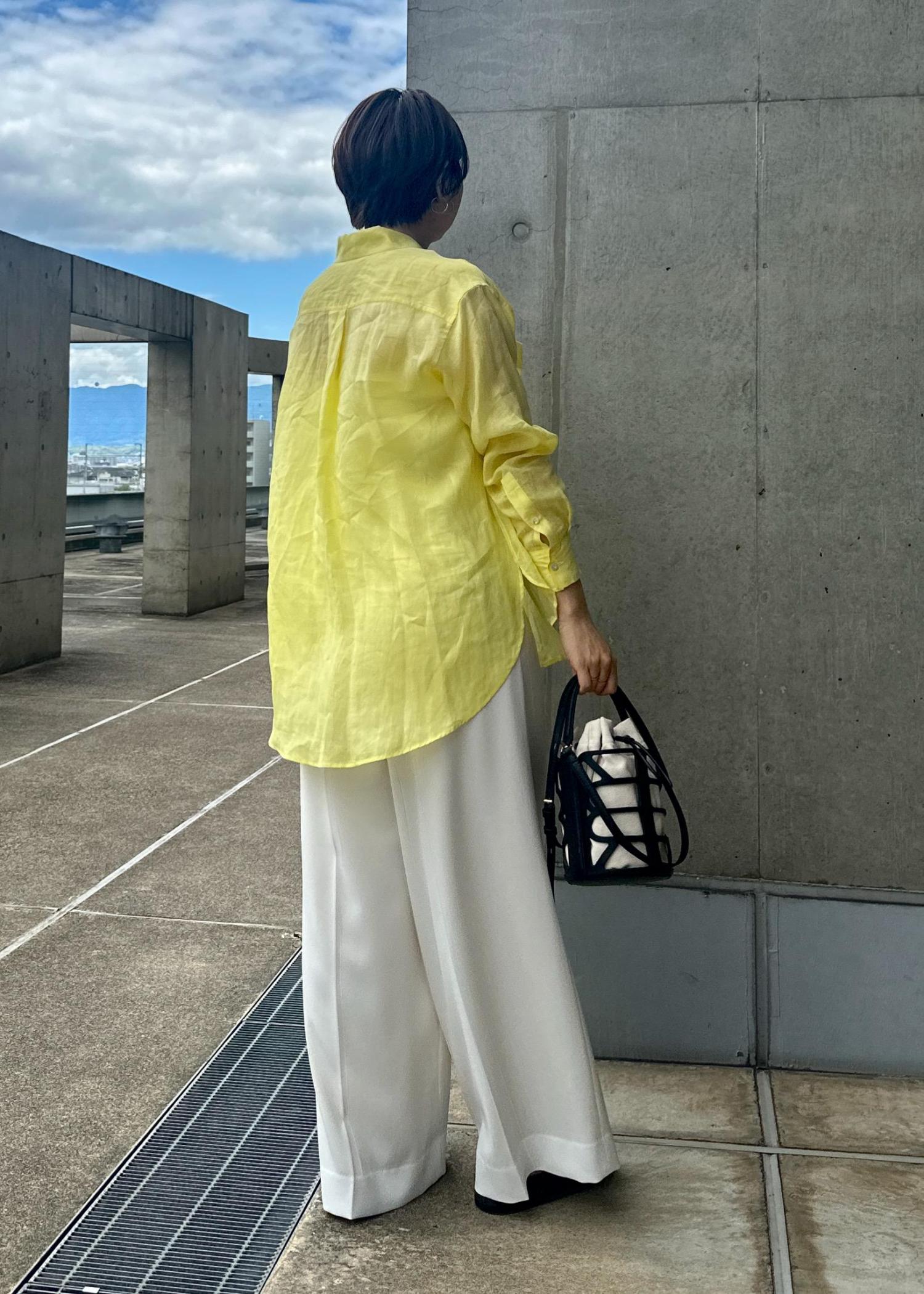 アウトレットROPÉ【洗える】ロイヤルラミーレギュラーシャツ【雑誌/メディア掲載】イエロー / F¥16,940レビュー162センチ 普段トップス38サイズ