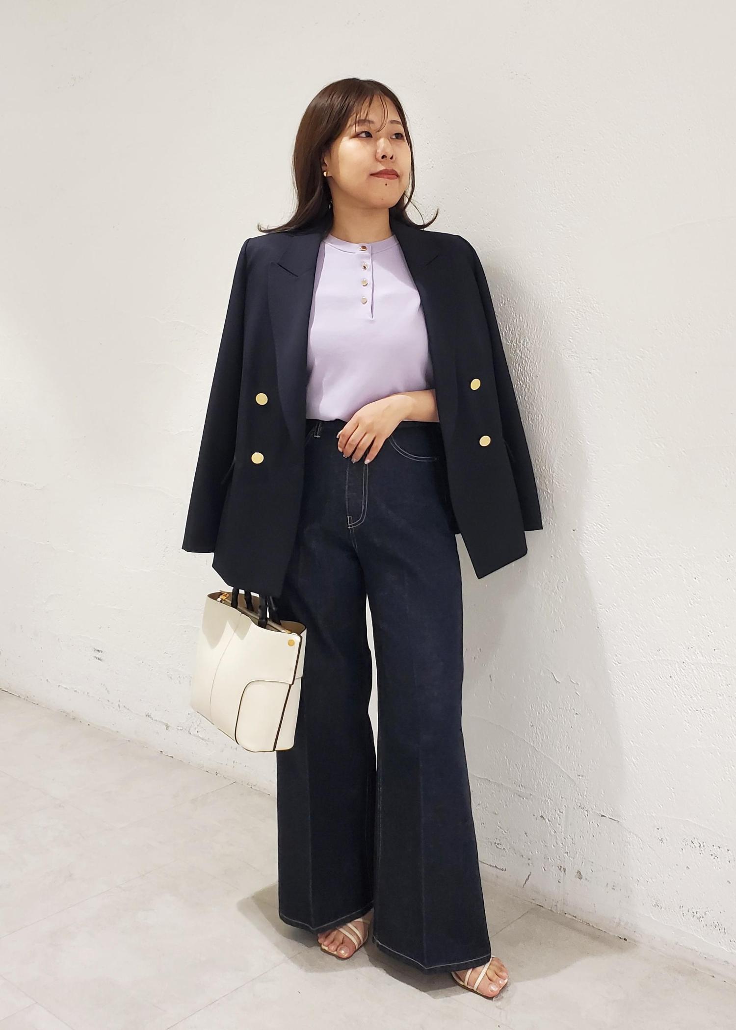 センタープレスと品の良いツヤがあり、カジュアル過ぎずに着られます◎