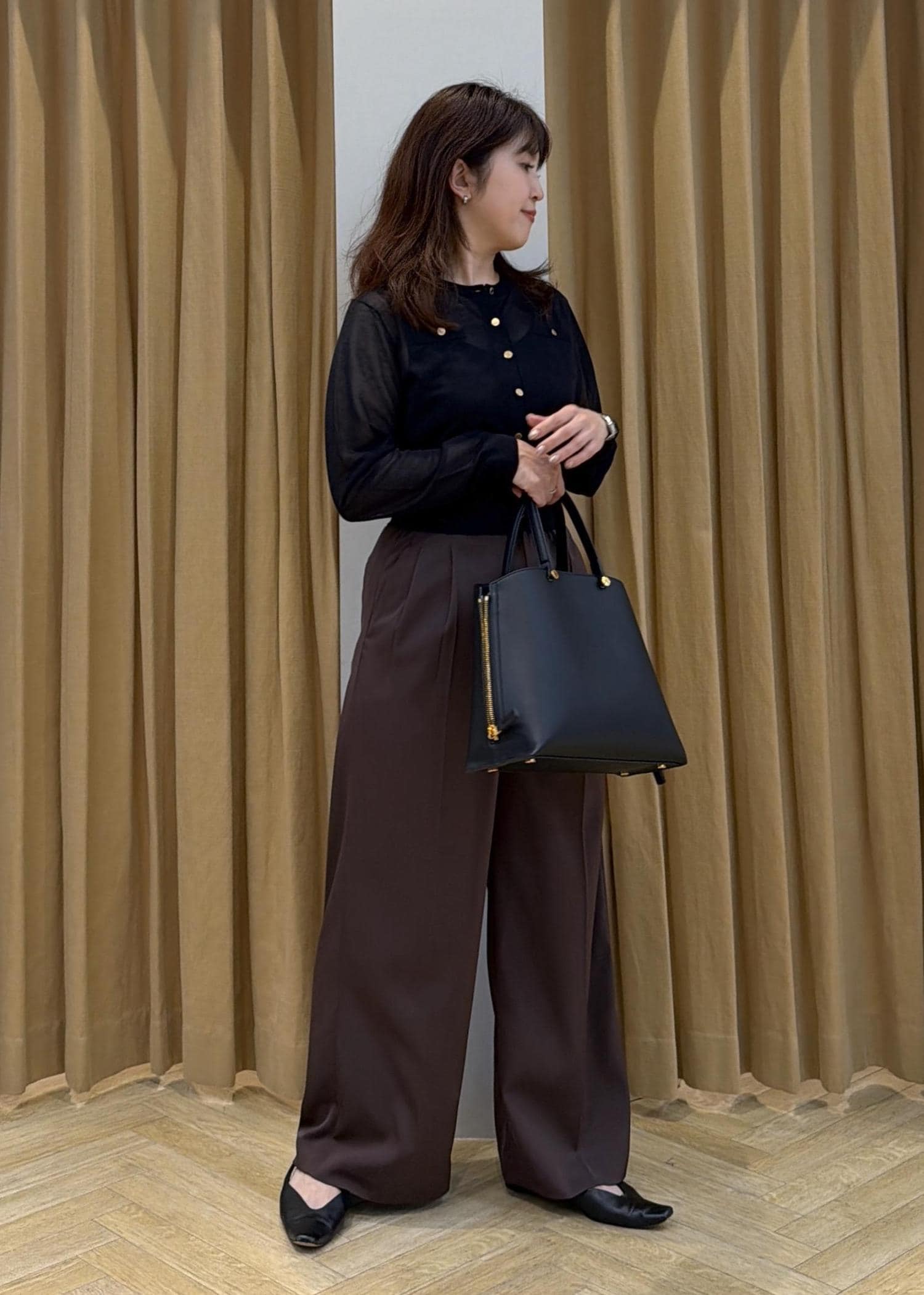 ROPÉジャガードストライプリラックスパンツブラック / 38¥27,500レビュー肌離れがよくさらっとはけるイージーパンツ。