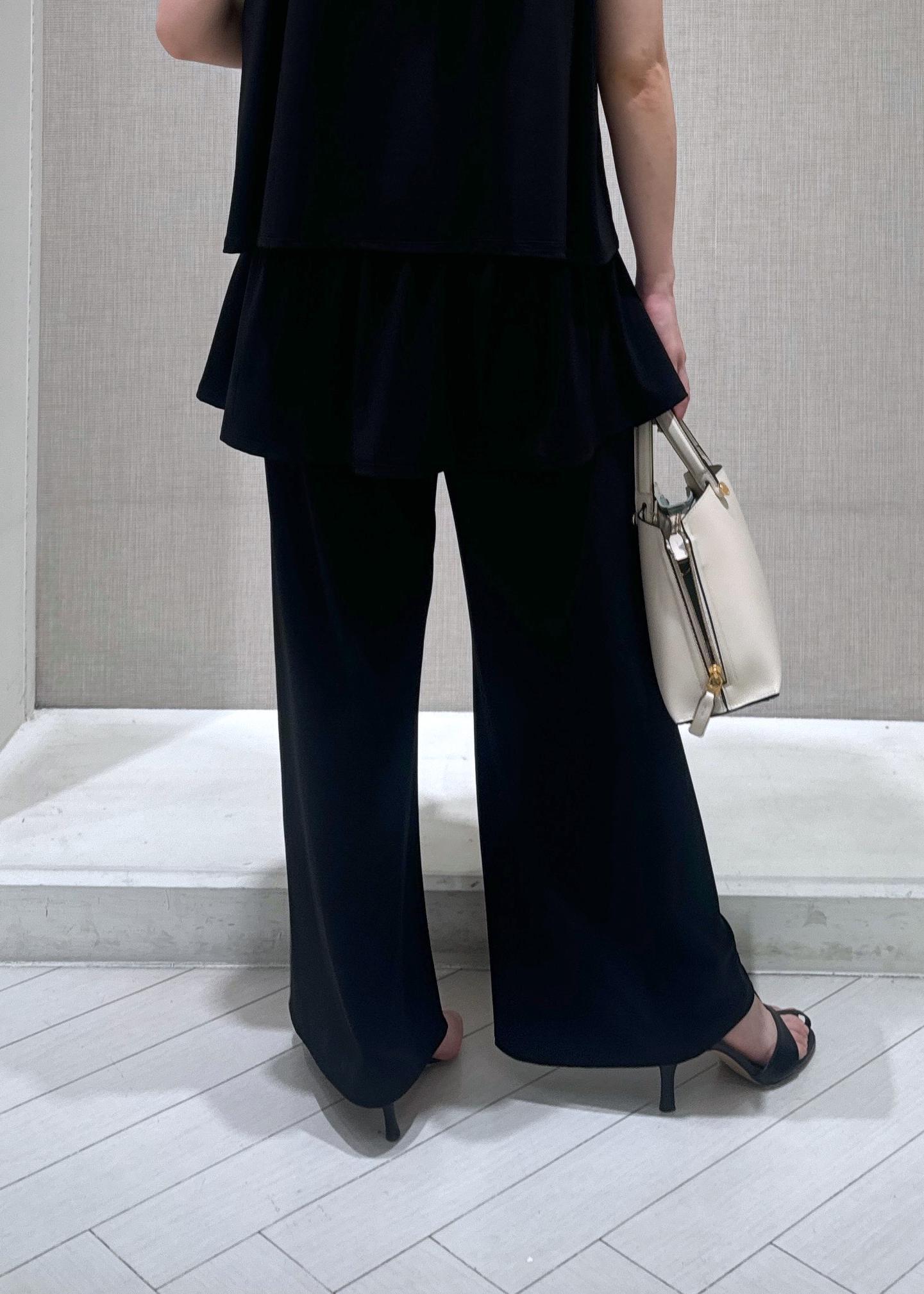 アウトレットROPÉトリアセジャージーパンツブラック / 36¥11,000レビュー身長150cmで36サイズ着用。ウエスト部分をひとまくりして着用しました。細身なシルエットですがラインが浮き出ることなく着用できます◎光が当たるとブラウンの光沢感が出ます。