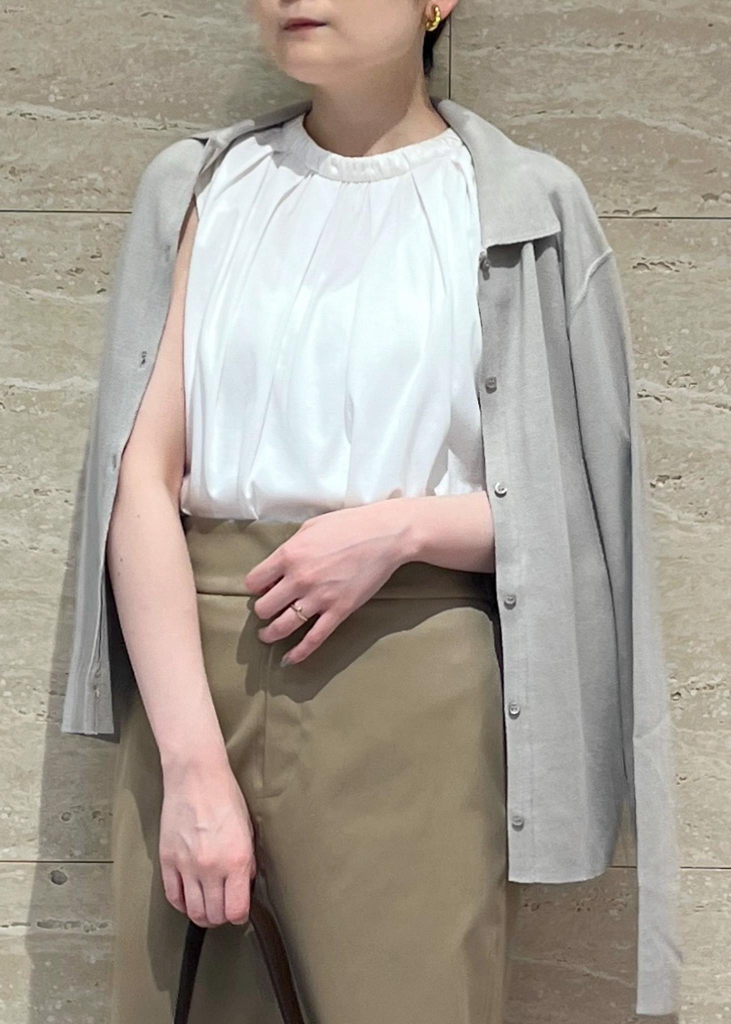 アウトレットROPÉサテンギャザーネックフレンチスリーブカットソーホワイト / F¥15,400レビュー首元のギャザーがブラウス見えする