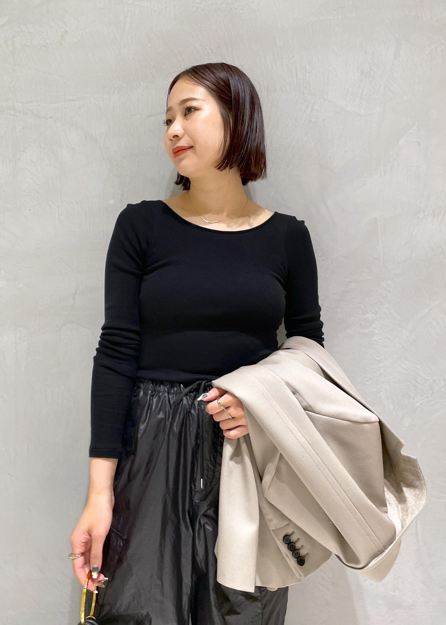 ジャケット以外をブラックで合わせ少しクールな雰囲気にしてみました。