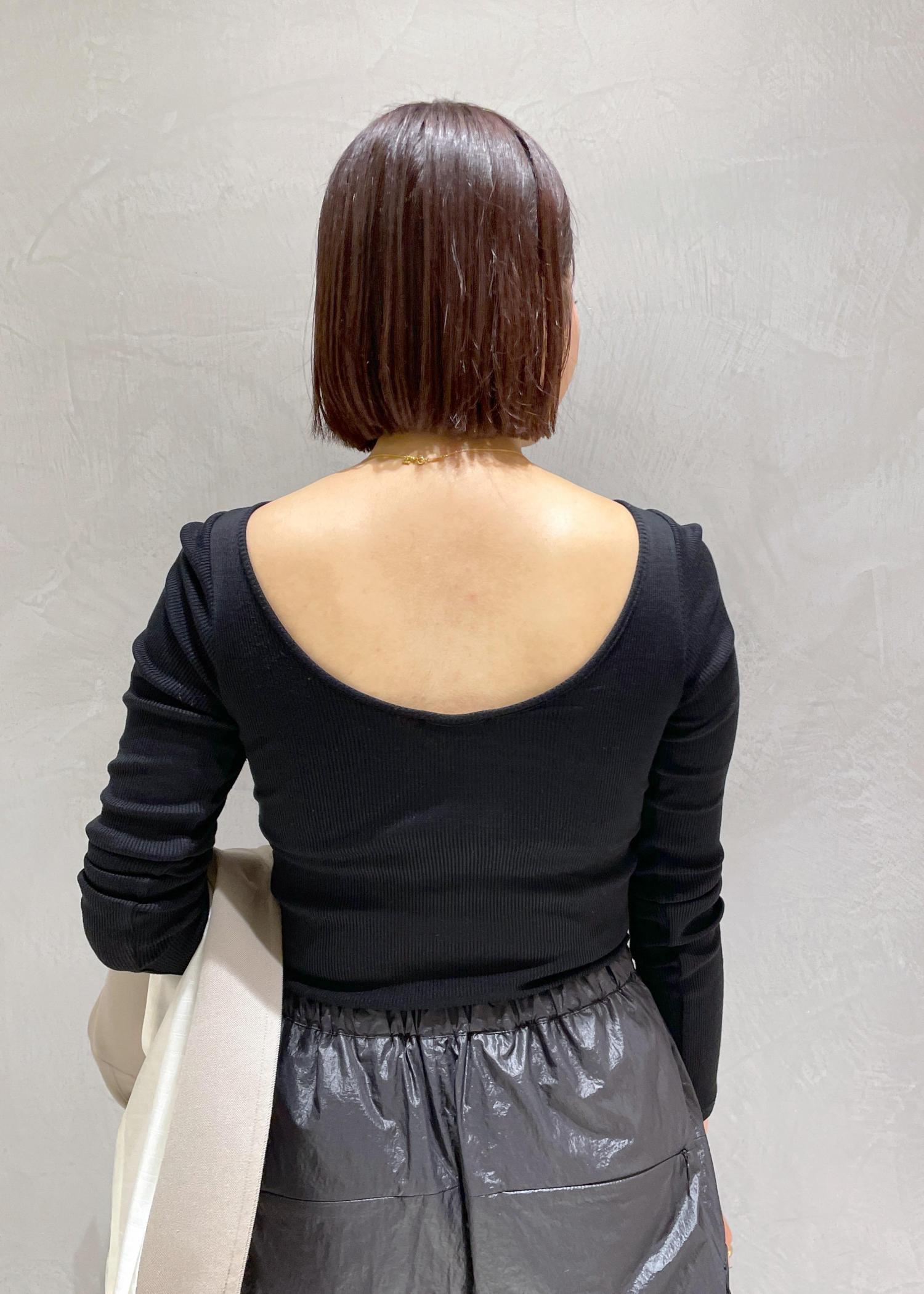 アウトレットROPÉコットンシルク丸胴テレコカップ付き長袖カットソーブラック / F¥7,920レビュー細身に見えますが伸縮性があり窮屈感なく着ることができます。