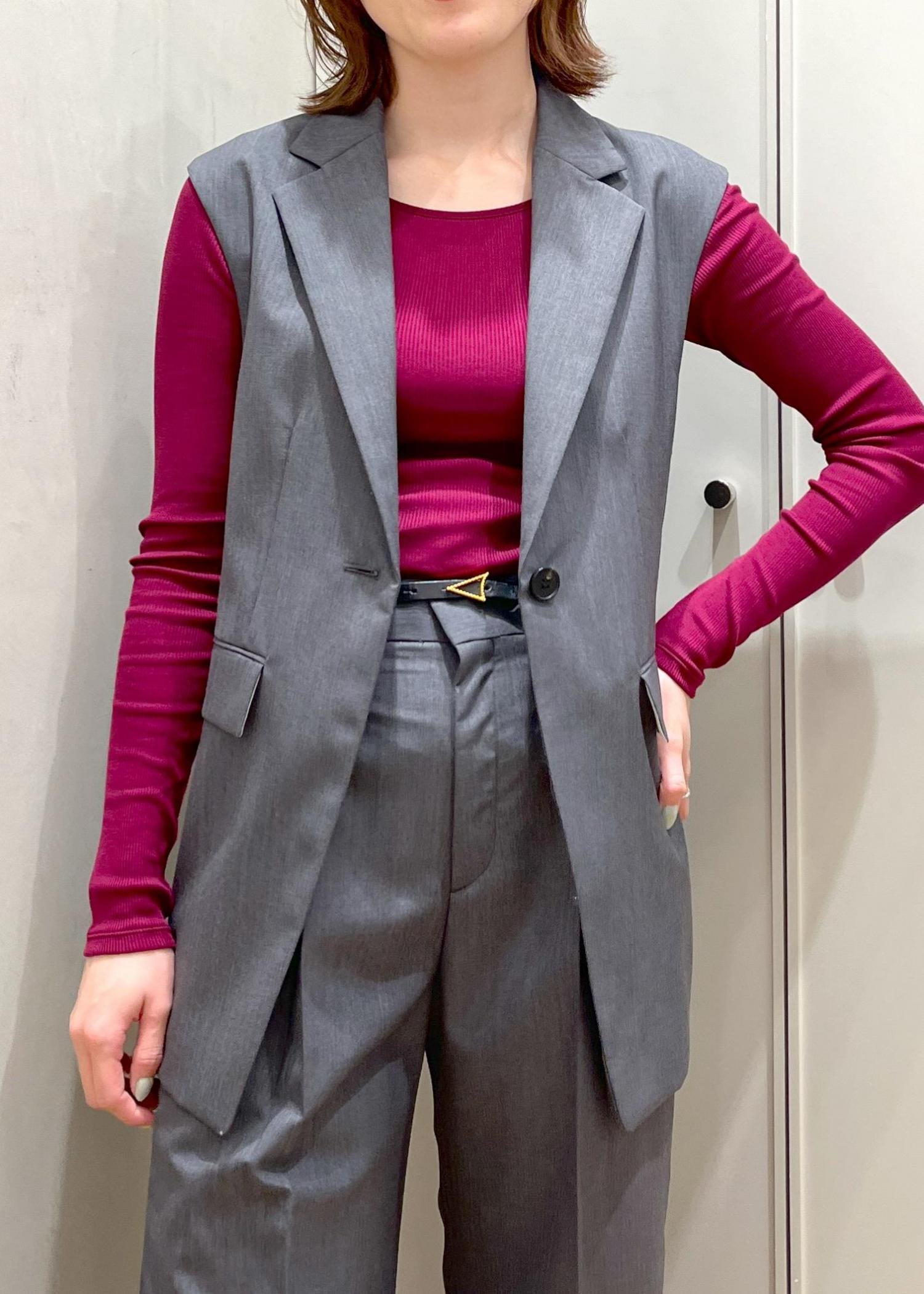 ジレと組み合わせればスタイリッシュで細見えする得意なスタイルになります♪
