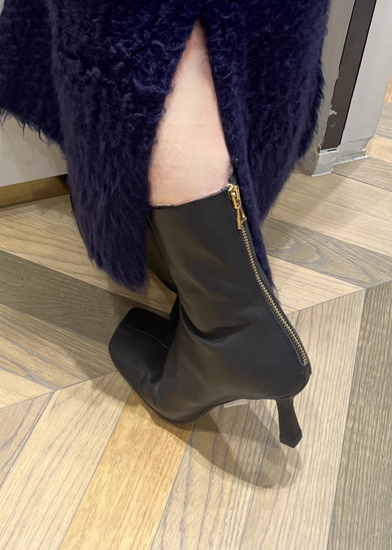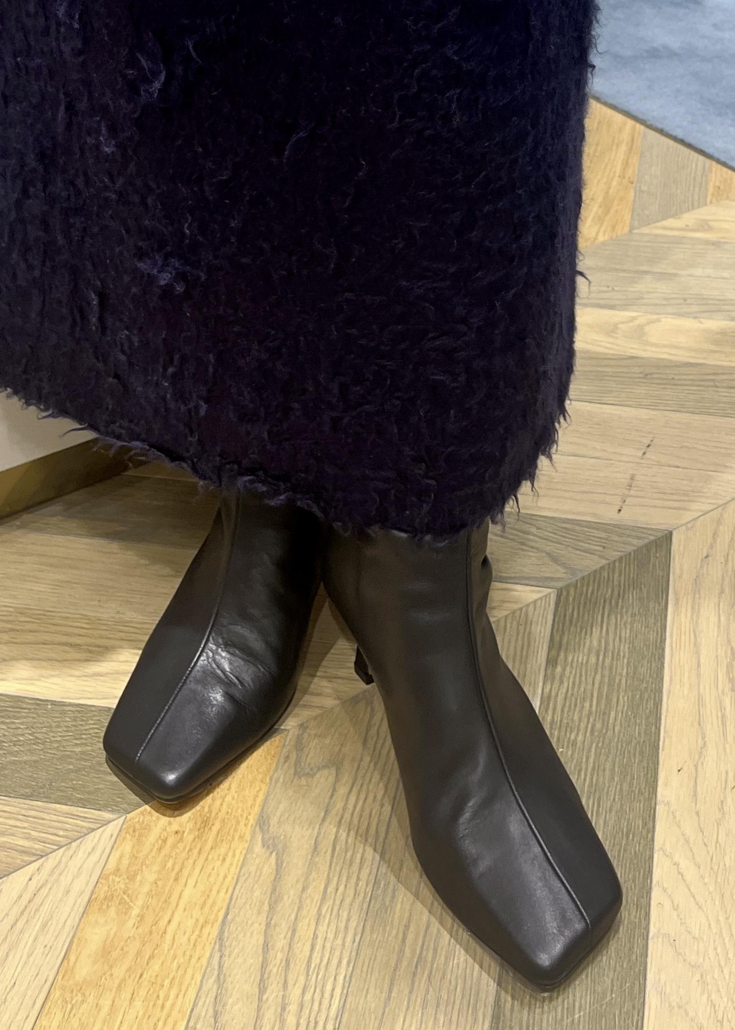 着丈は足首が見えるくらいで長めですが、後ろにスリットも入っており重たくない印象で着用いただけます。
