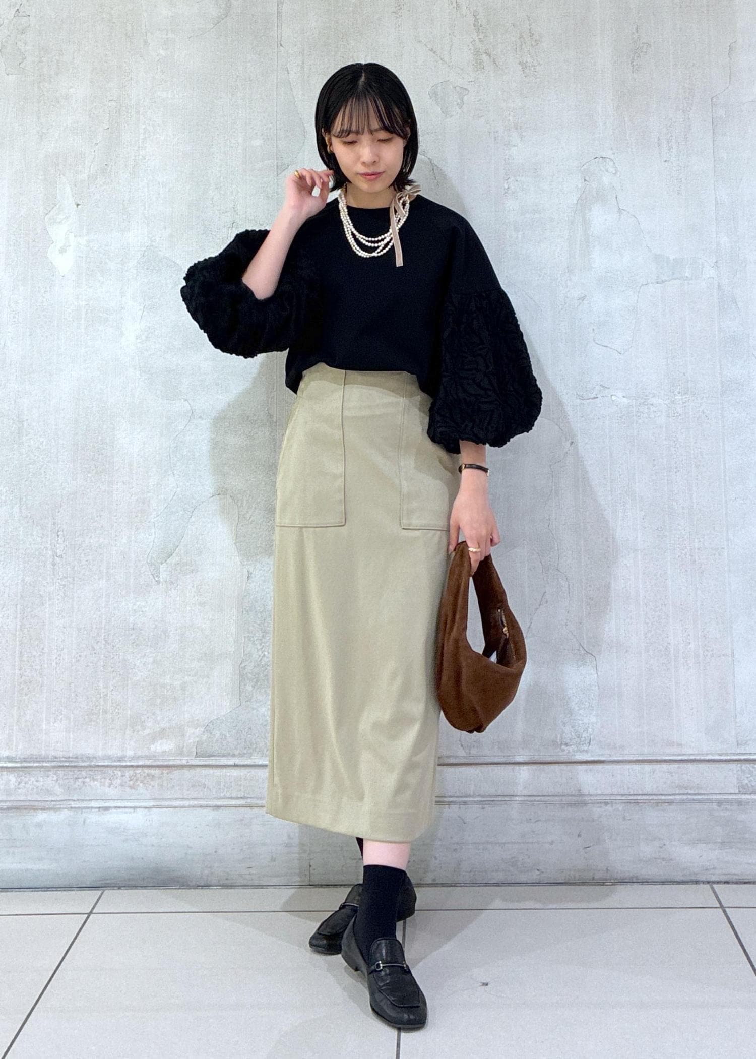 長めの袖口リブにしたことで身頃のシルエットにコントラストがでて、