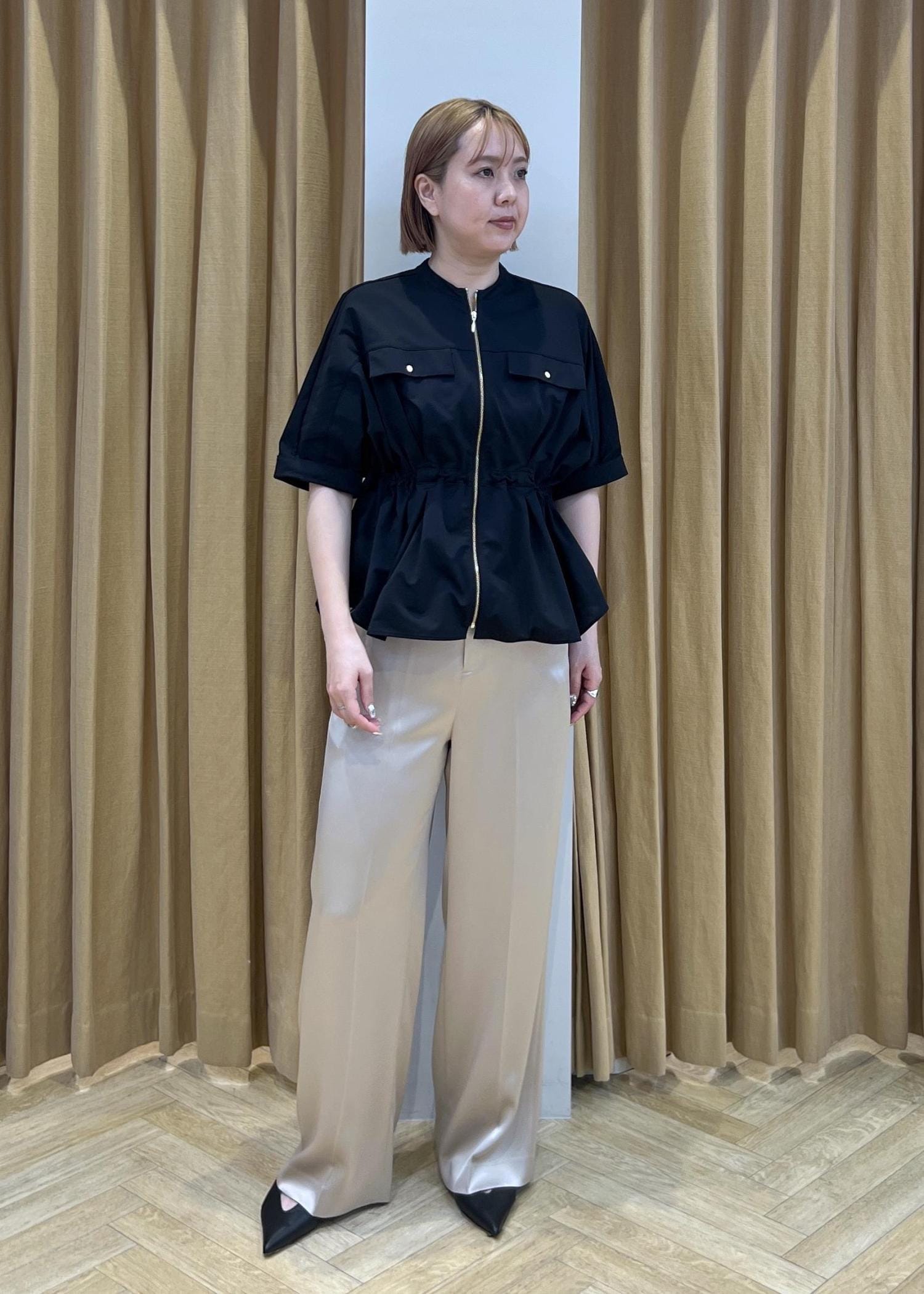 裏地がないのにニットと着用しても引っ掛かりのない滑らかな羽織心地の素材の良さと柔らかな素材感、ゆったりしたラインがとてもラグジュアリーな印象に。