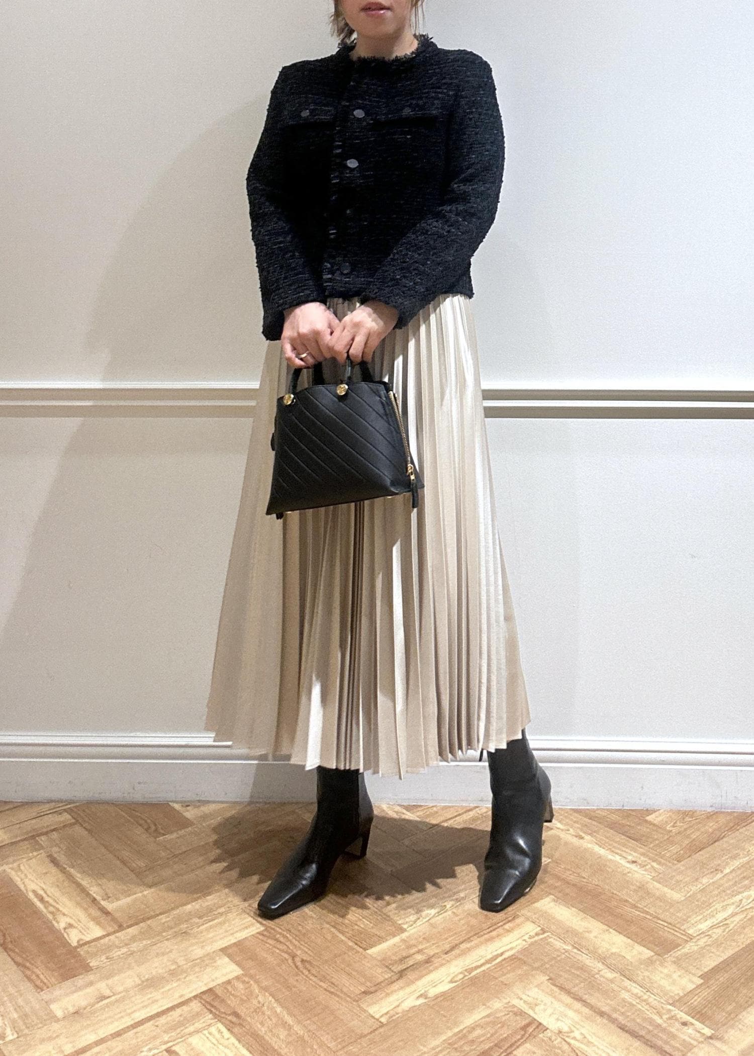 ふわふわニットと上品華やか見え抜群のスパンコール生地のスカートを合わせて、ホリデーシーズンのイベントにもピッタリなコーディネートにしてみました♪