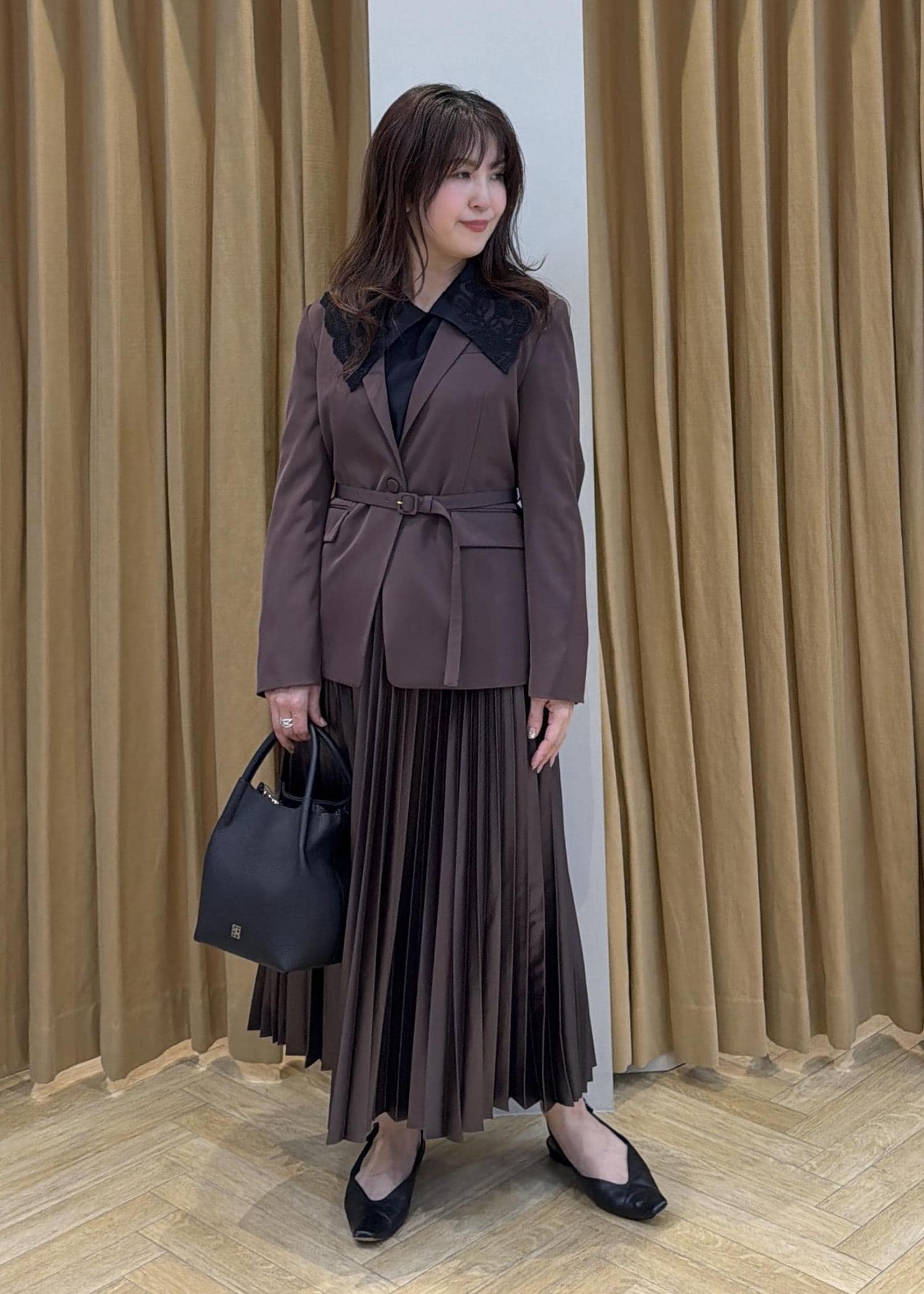 たっぷり贅沢なボリュームのスカートと合わせて春先取りのスタイルに。