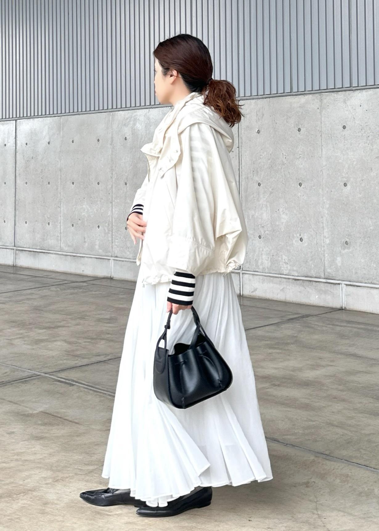 ROPÉ【撥水】シルク混タフタギャザーマウンテンパーカ/洗えるオフホワイト / 38¥49,500レビュー身長161cmで普段38サイズを着用。