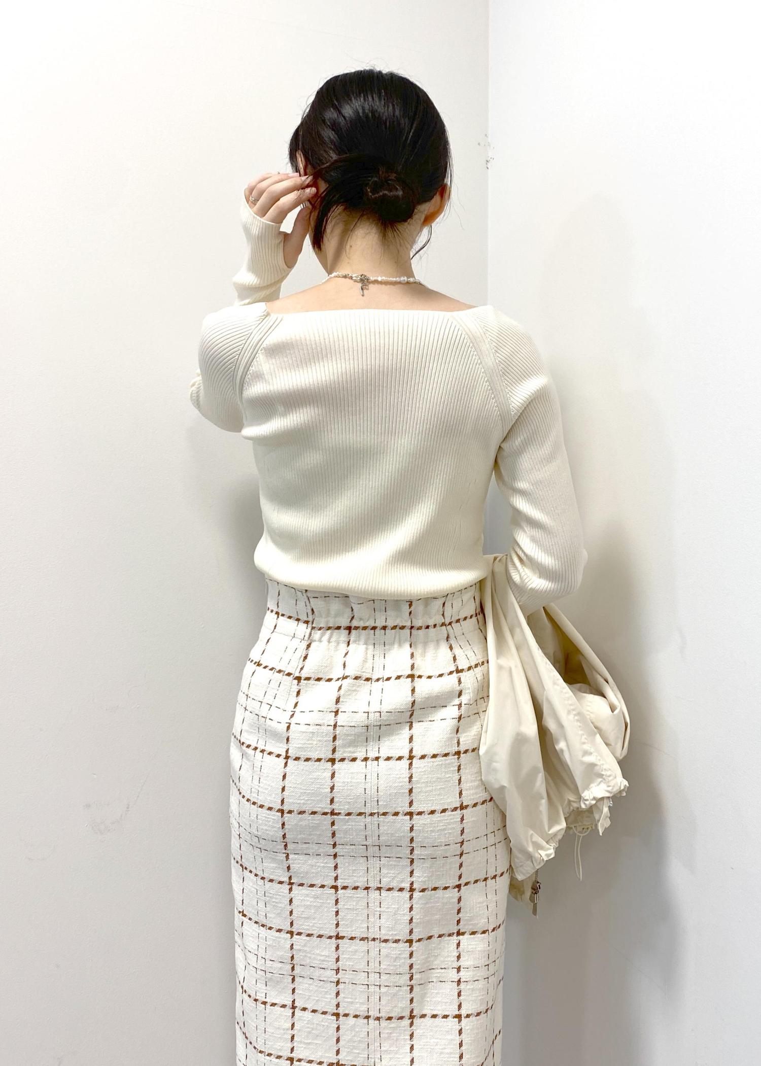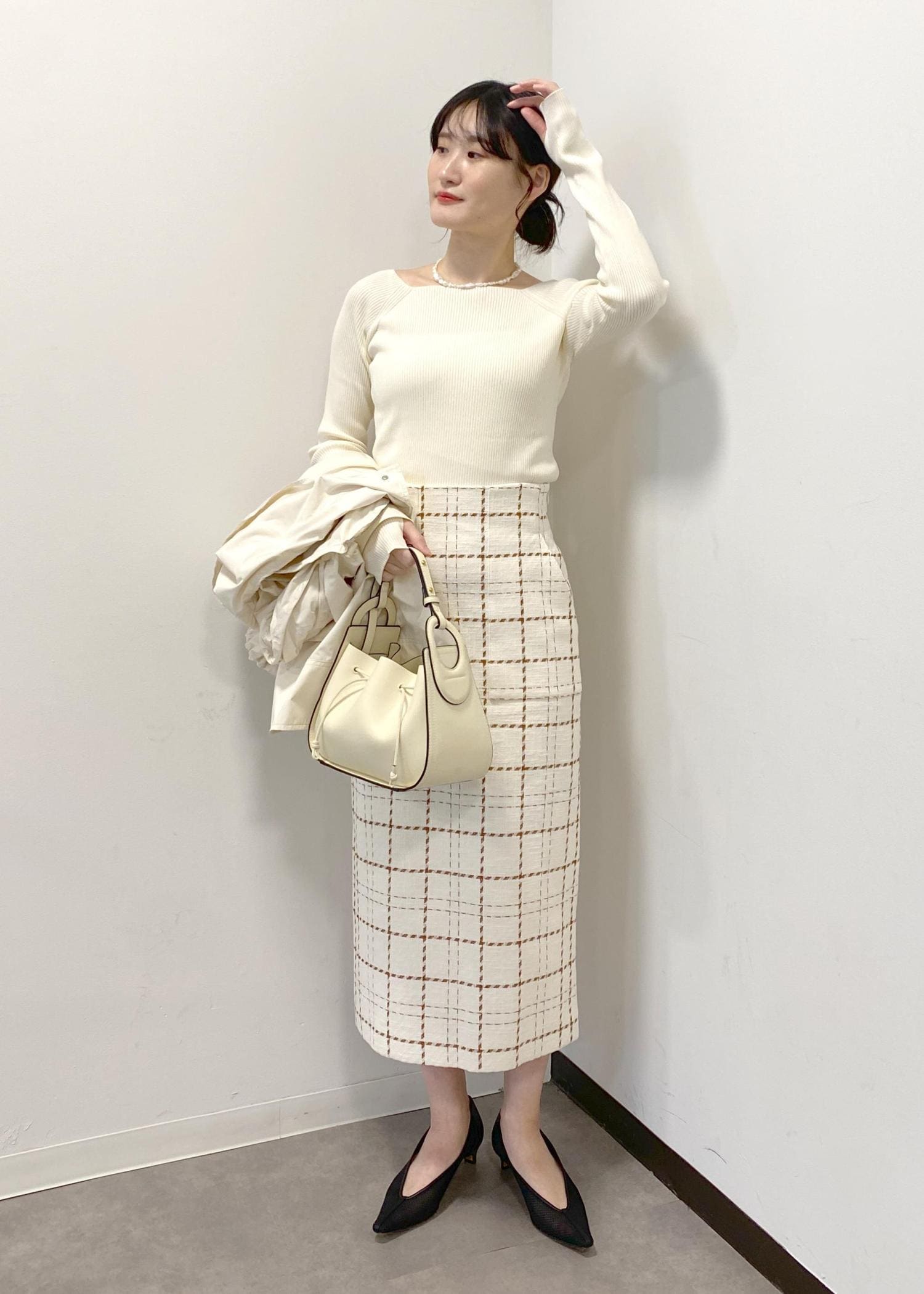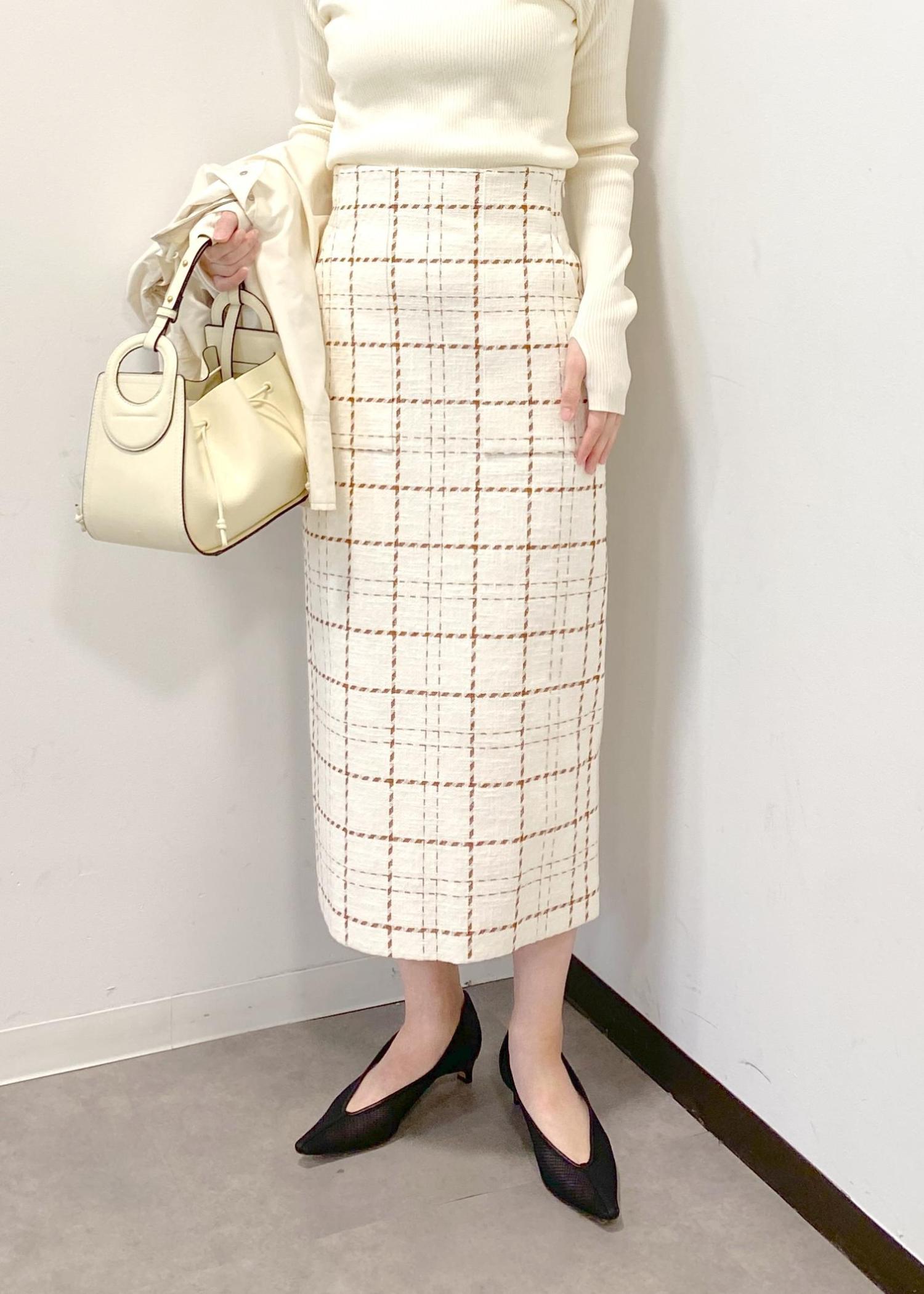 【洗える】ツイードチェック ポケット付きタイトスカート