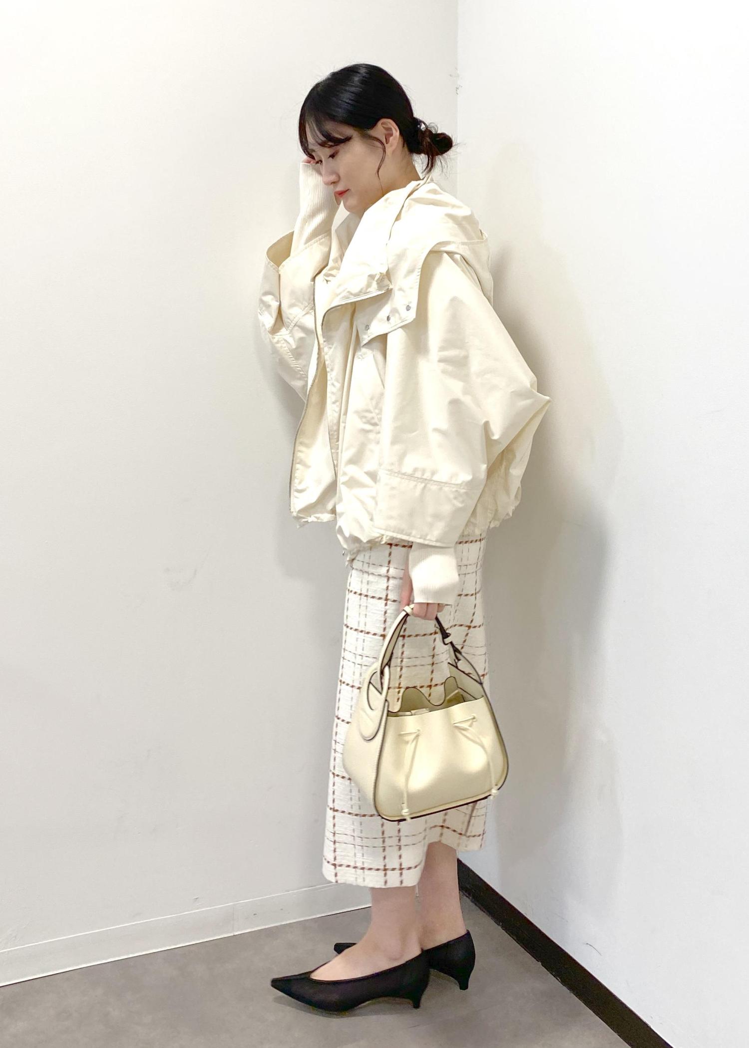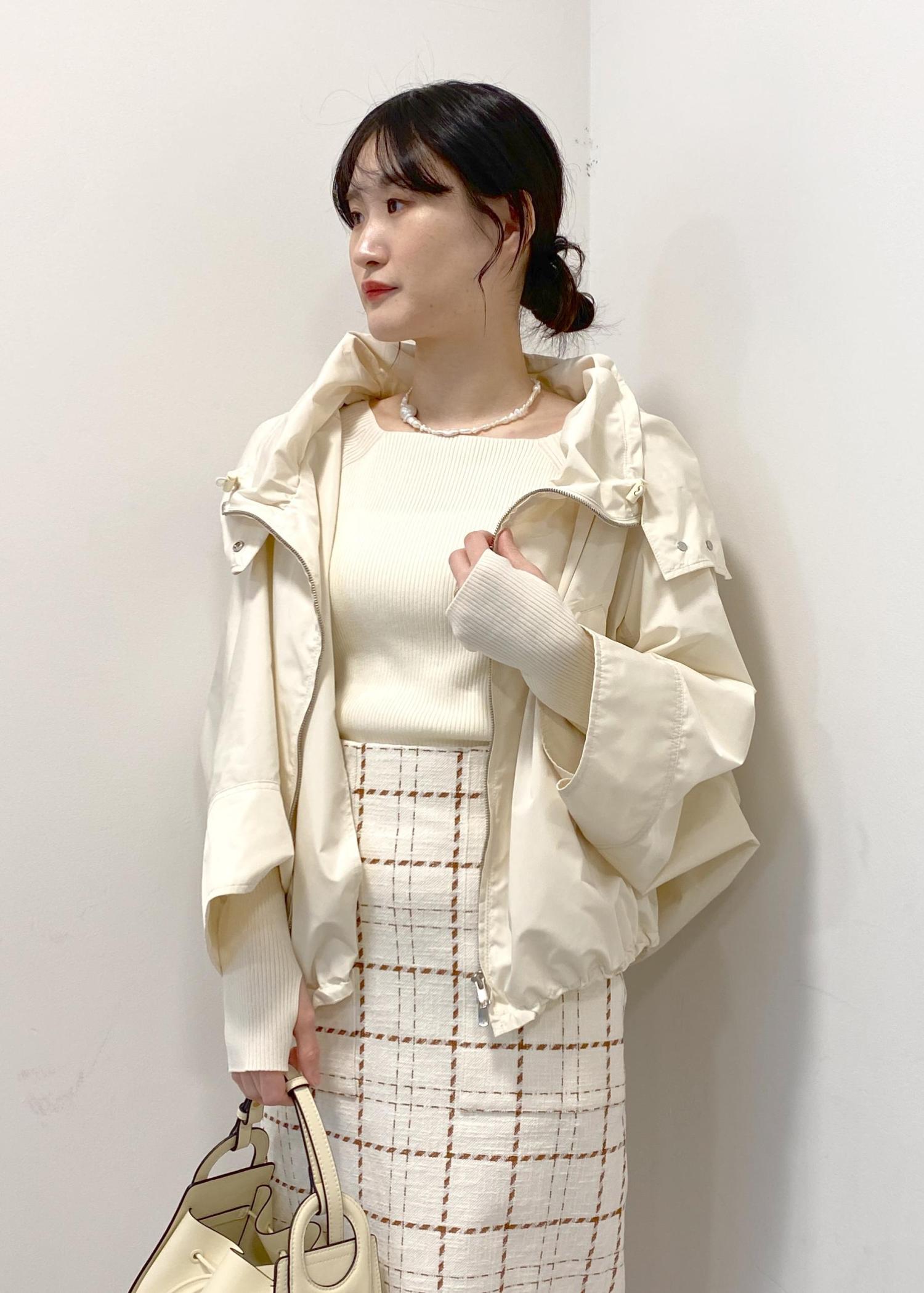また、三角形シルエットのマウンテンパーカーに、ロペの定番 ポケット付きタイトスカートを合わせると とってもスタイルアップします◎