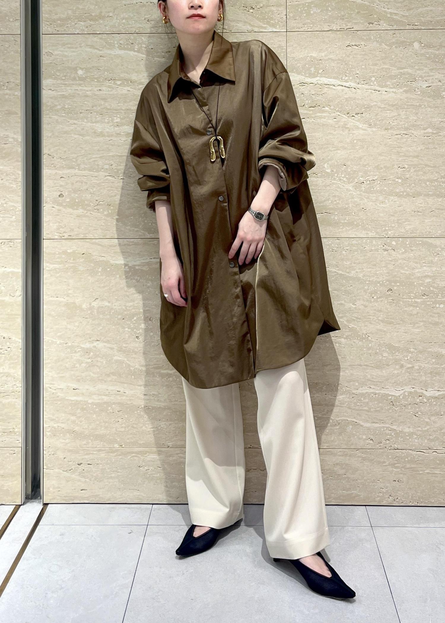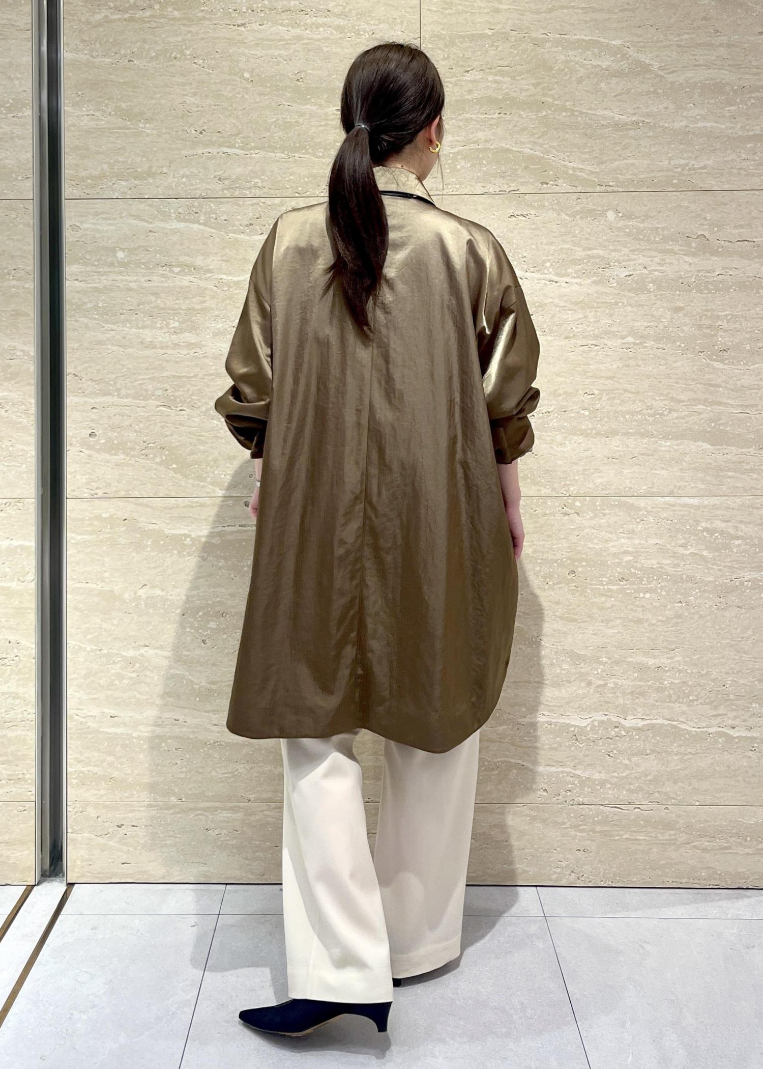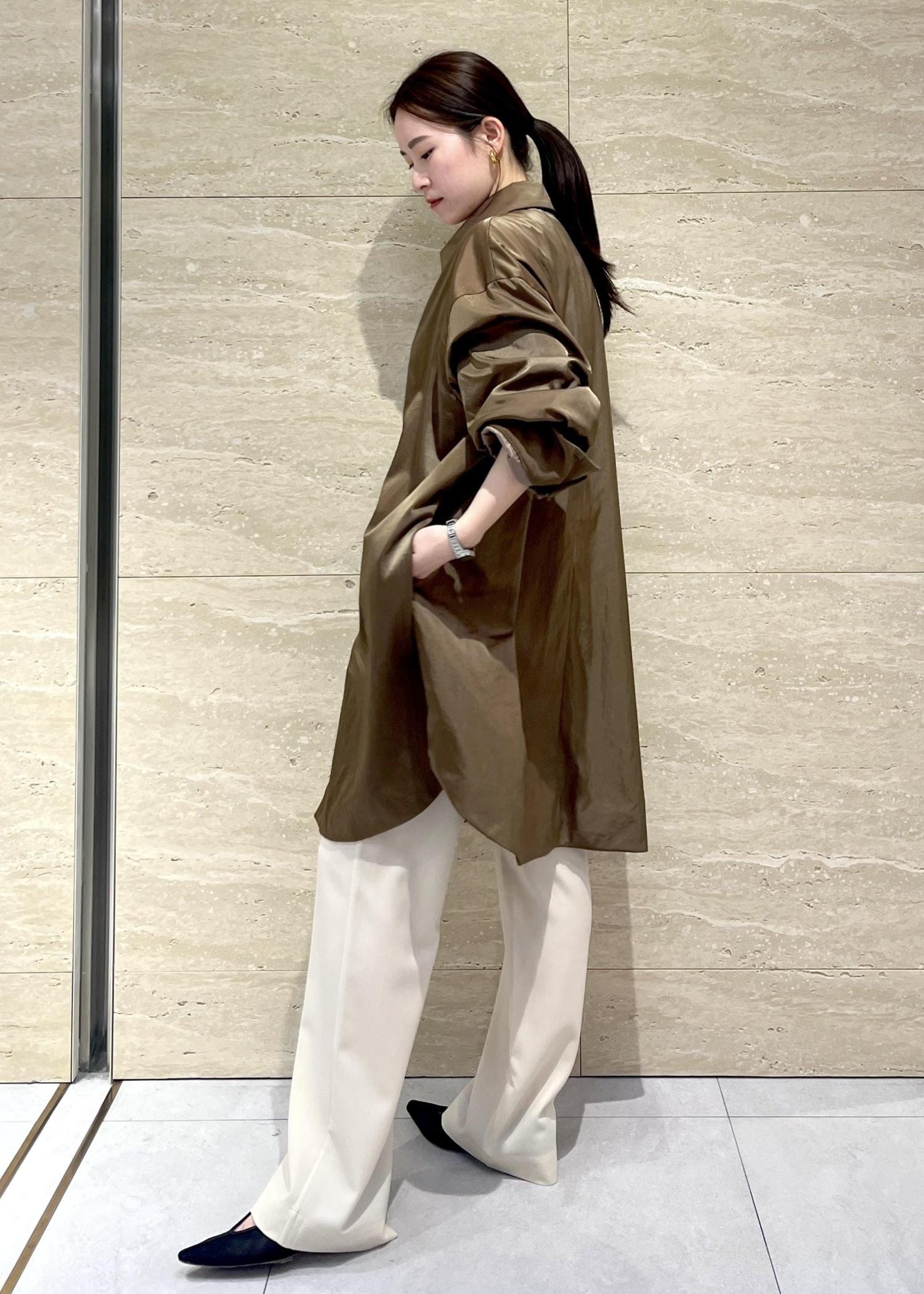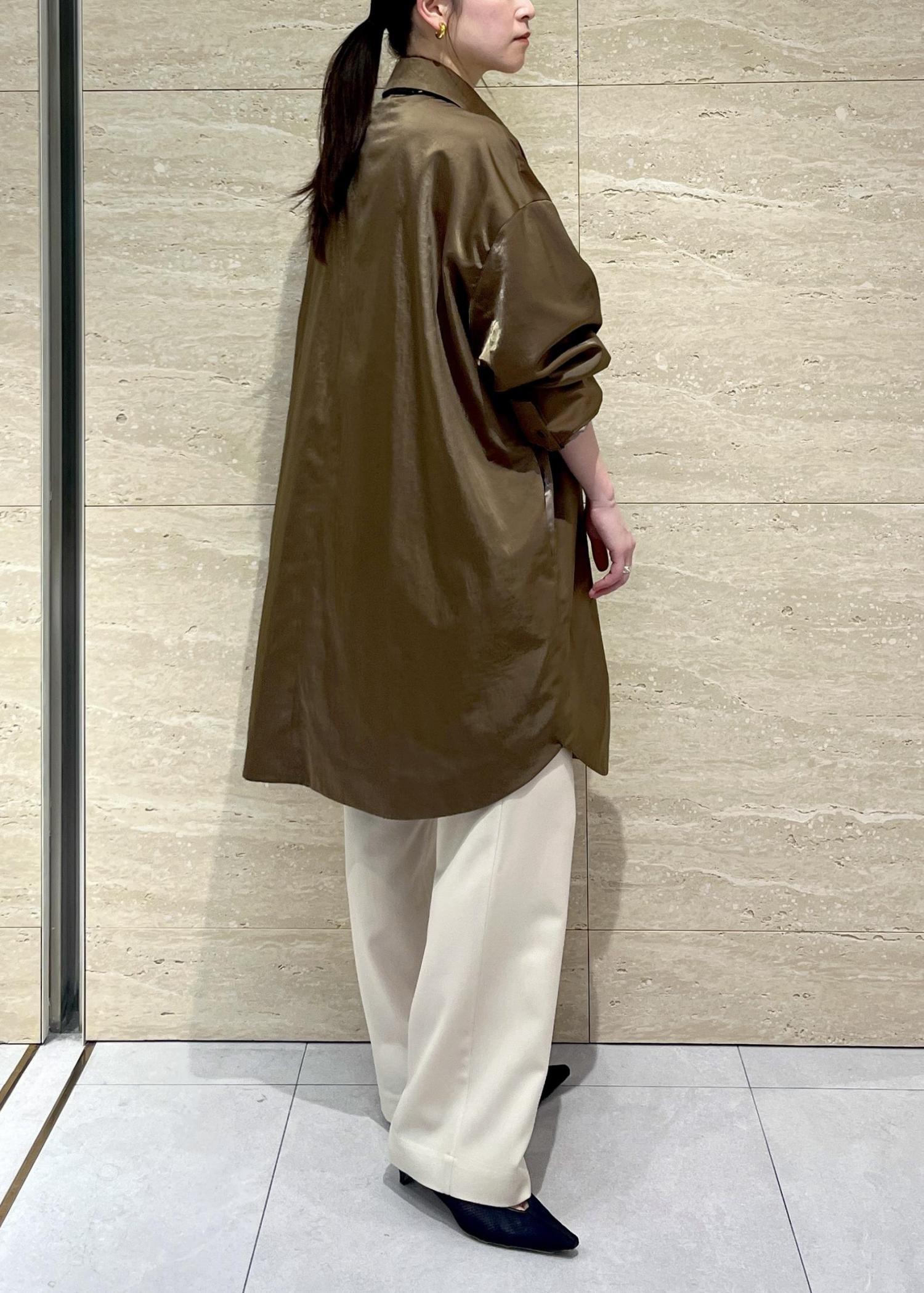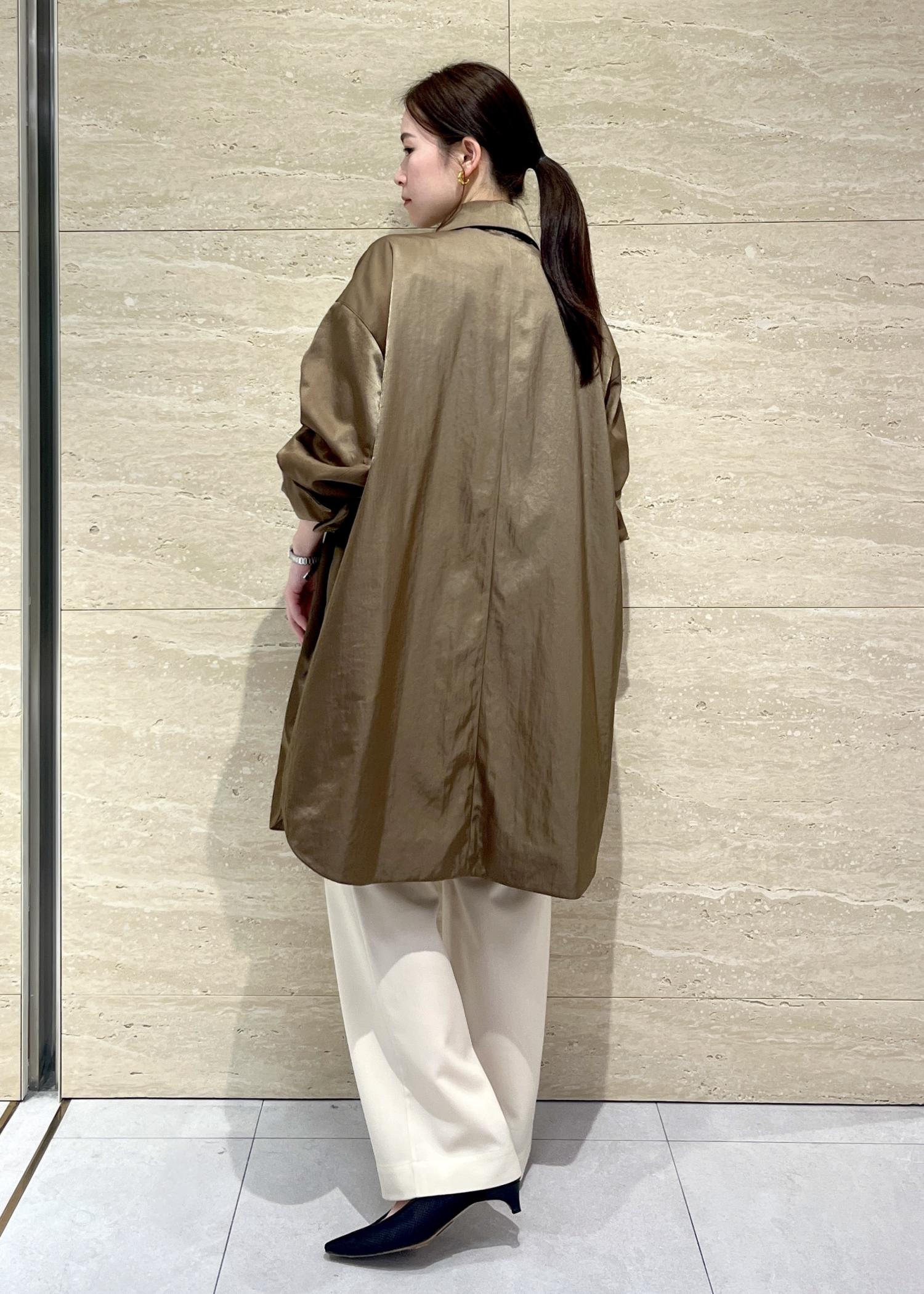 ツヤとハリのある生地で、オーバーサイズでも着膨れせずモードな雰囲気でスタイリングしていただけます!