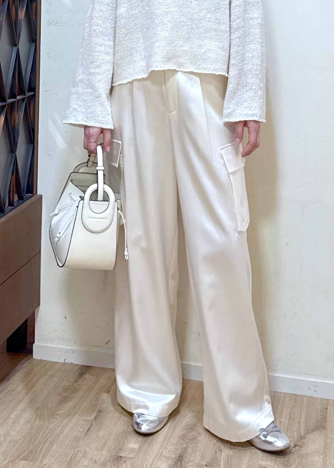アウトレットROPÉ【洗える】シャイニーサテンパンツ/一部セットアップ対応オフホワイト / 36¥11,000レビュー163センチ 36サイズ着用