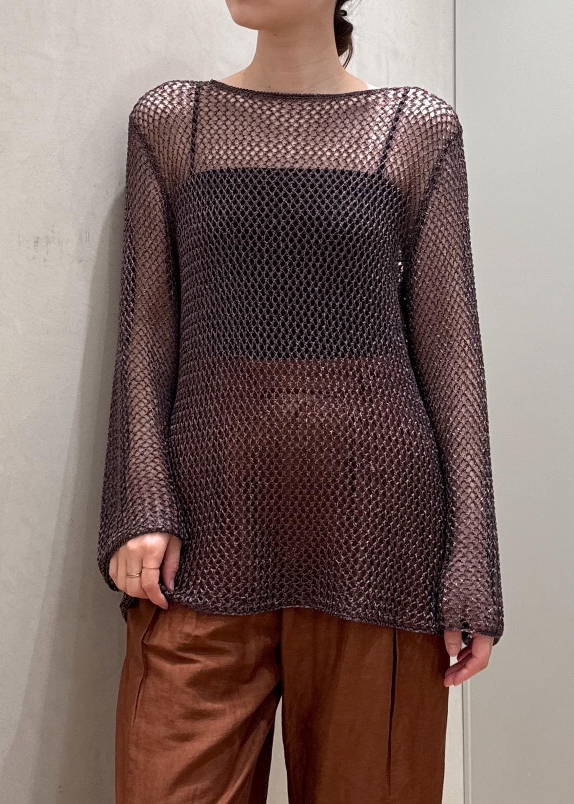 アウトレットROPÉラメコードメッシュプルオーバー/洗えるゴールド / F¥13,200レビュー肌触りが柔らかく、チクチク感も無く着られるメッシュトップス。