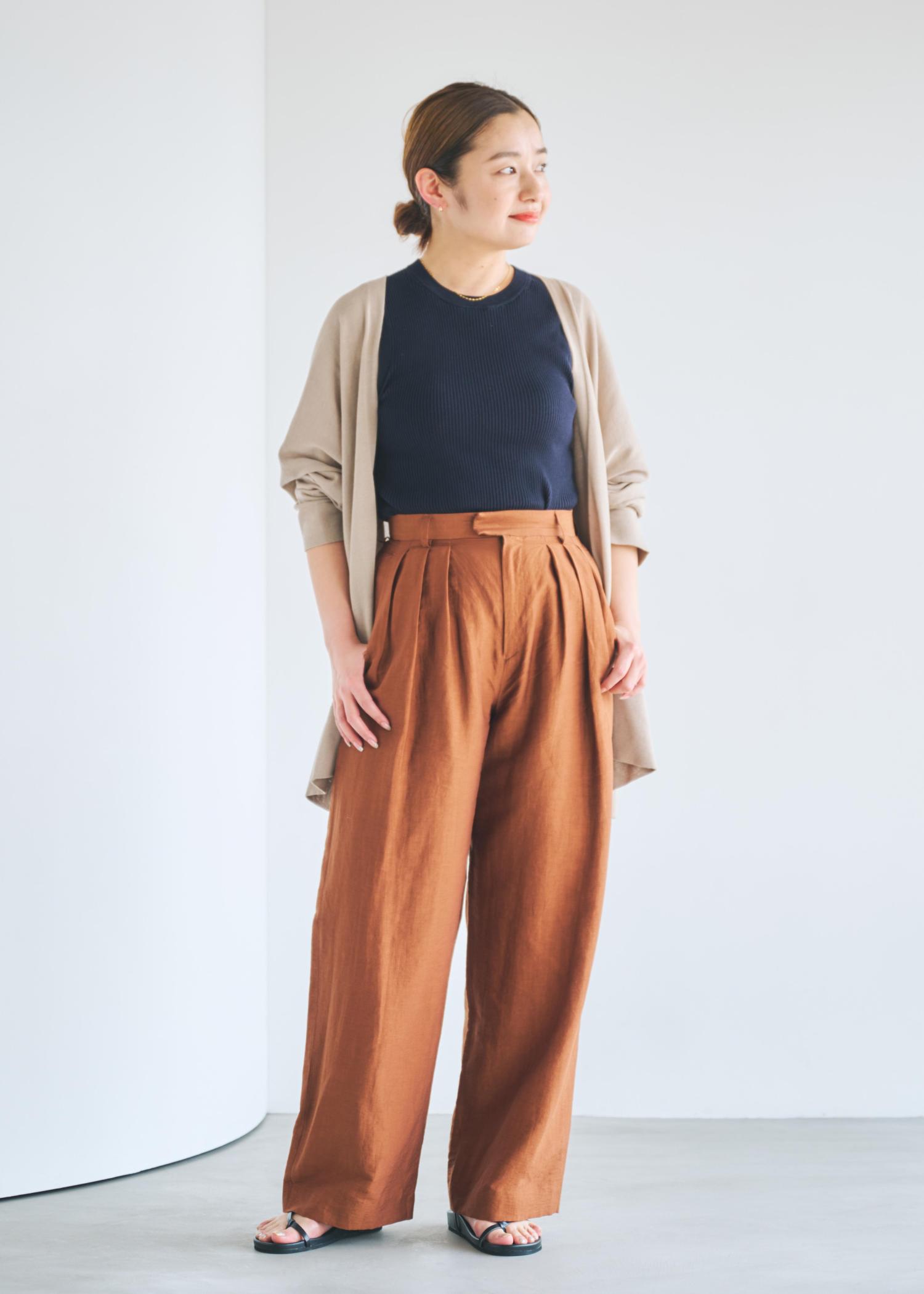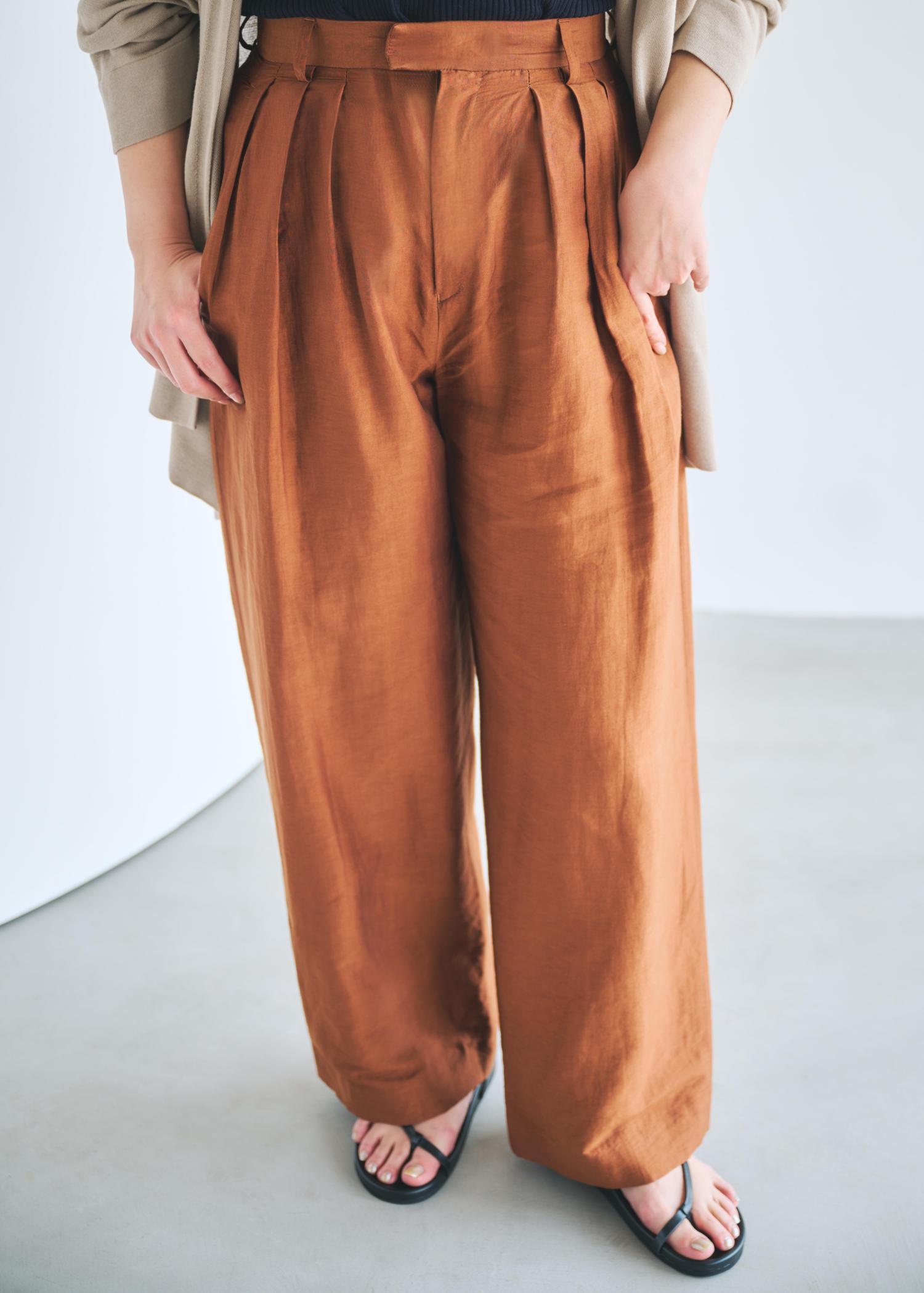 アウトレットROPÉ【洗える】ビスコースリネン スラブスリータックパンツ/一部セットアップ可能ブラウン / 38¥12,650レビューリネン混のセミワイドパンツです。薄手の生地を使用しているので別途裏地がついてきます。