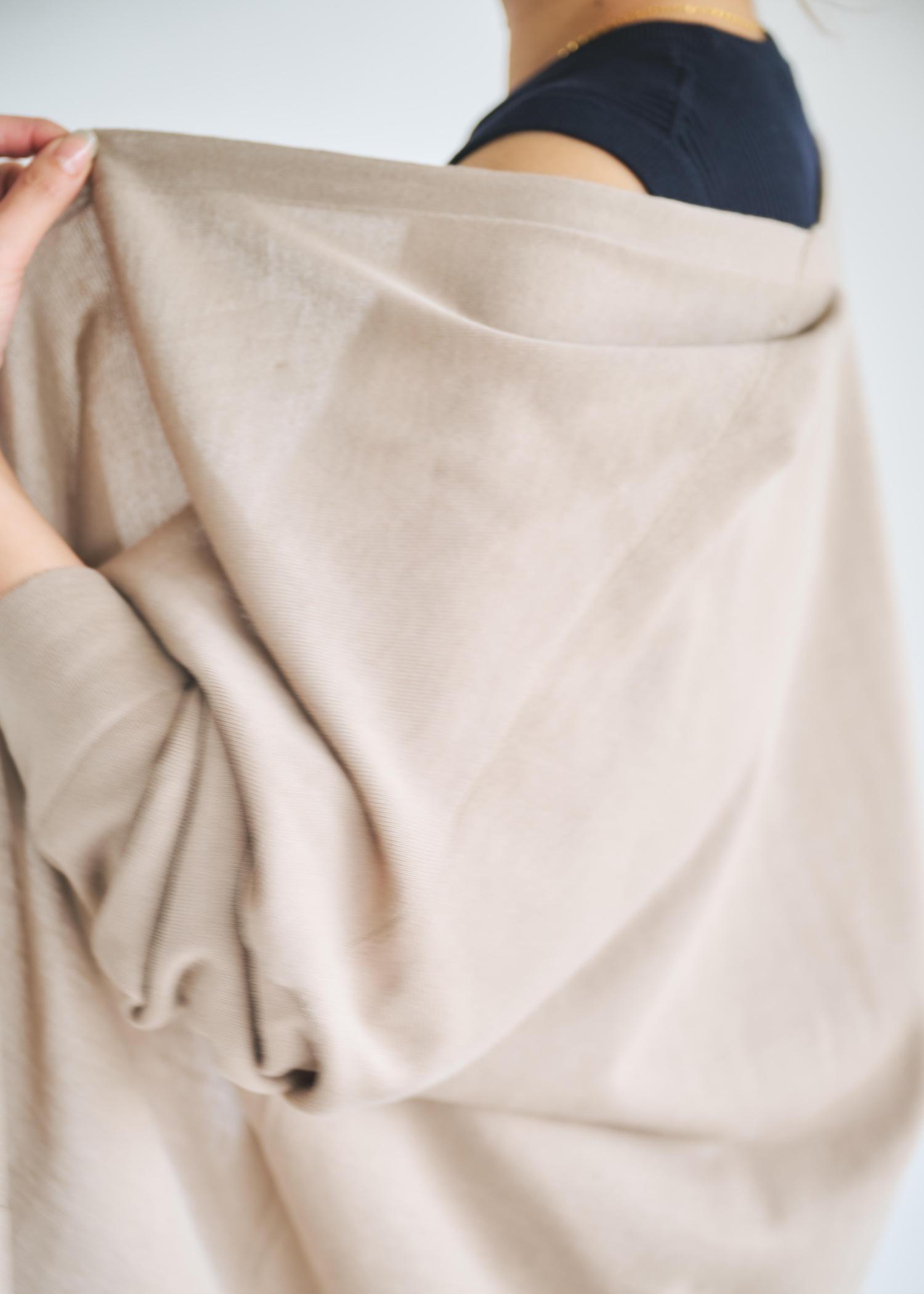 肌離れが良く、すこしひやっとした肌触りなので湿度の高い時期や暑い季節に不快感なくお召しいただけます!