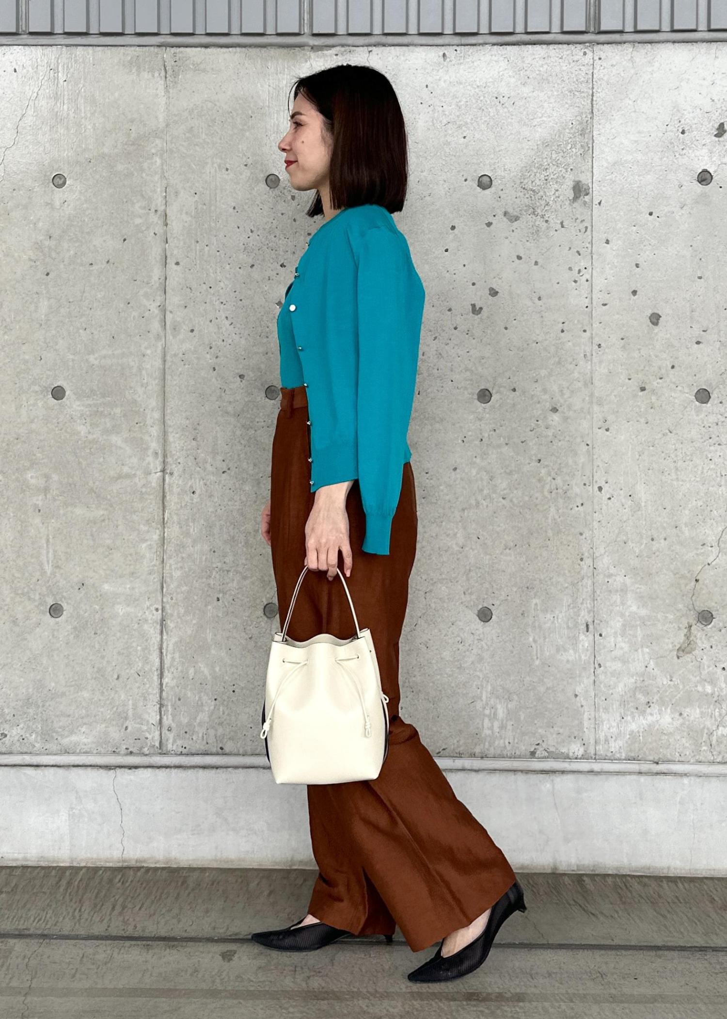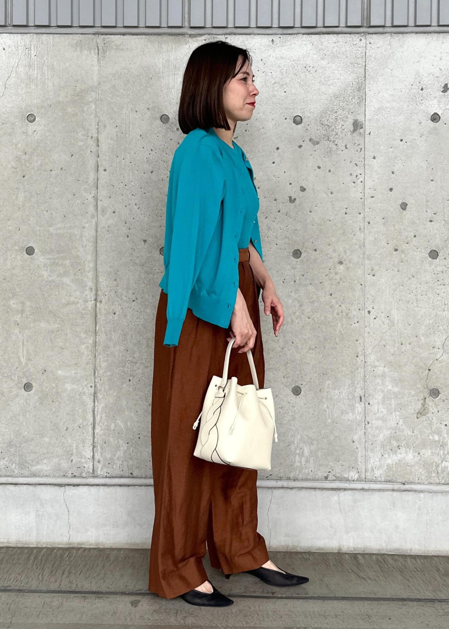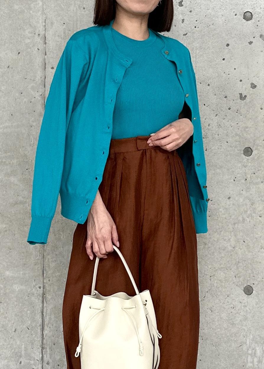 アウトレットROPÉ【洗える】オーガニックコットンハイゲージカーディガンターコイズ / F¥15,180レビュー身長156cm。Fサイズ着用。