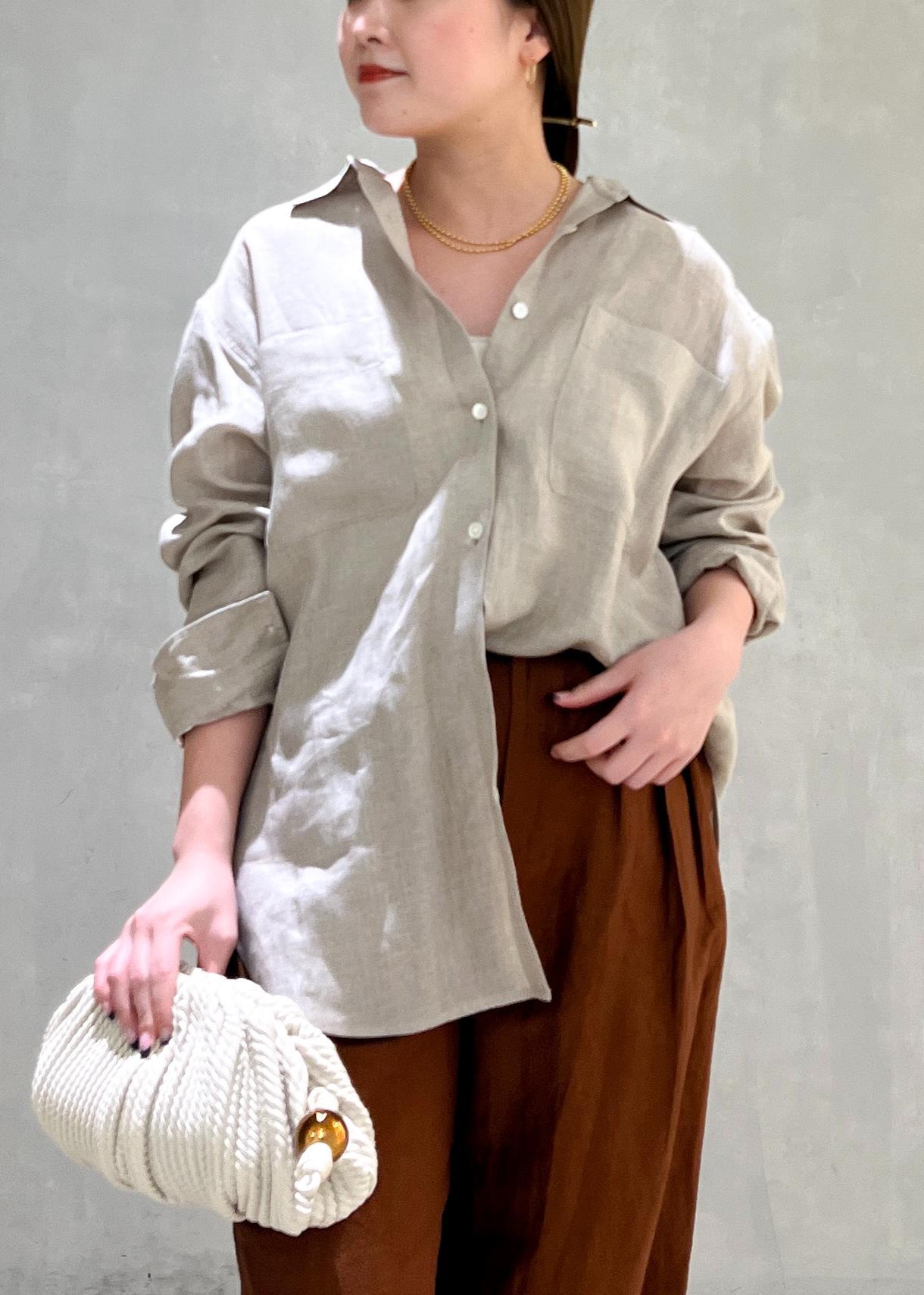 ROPÉ【洗える】ヨーロピアンリネンベーシックシャツ/一部セットアップ対応ベージュ / F¥25,300レビュー抜くとゆるっとしたフォルムが素敵。