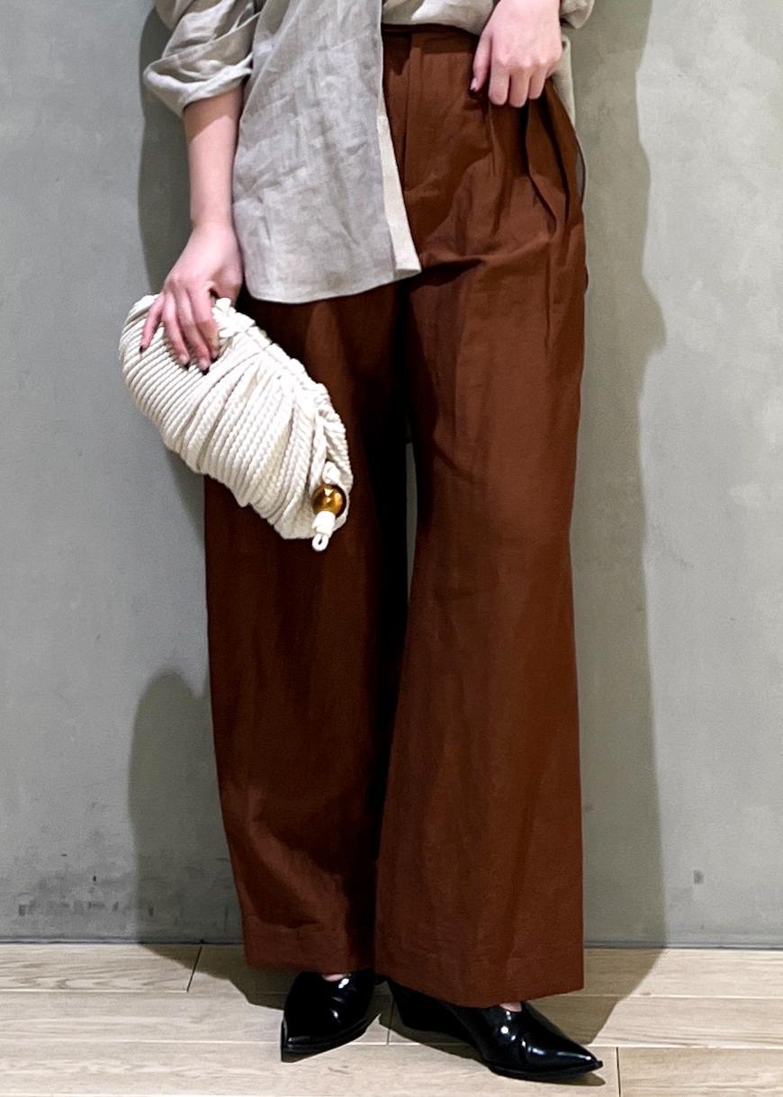 アウトレットROPÉ【洗える】ビスコースリネン スラブスリータックパンツ/一部セットアップ可能ブラウン / 36¥12,650レビュー36サイズ着用でウエスト周りピッタリ