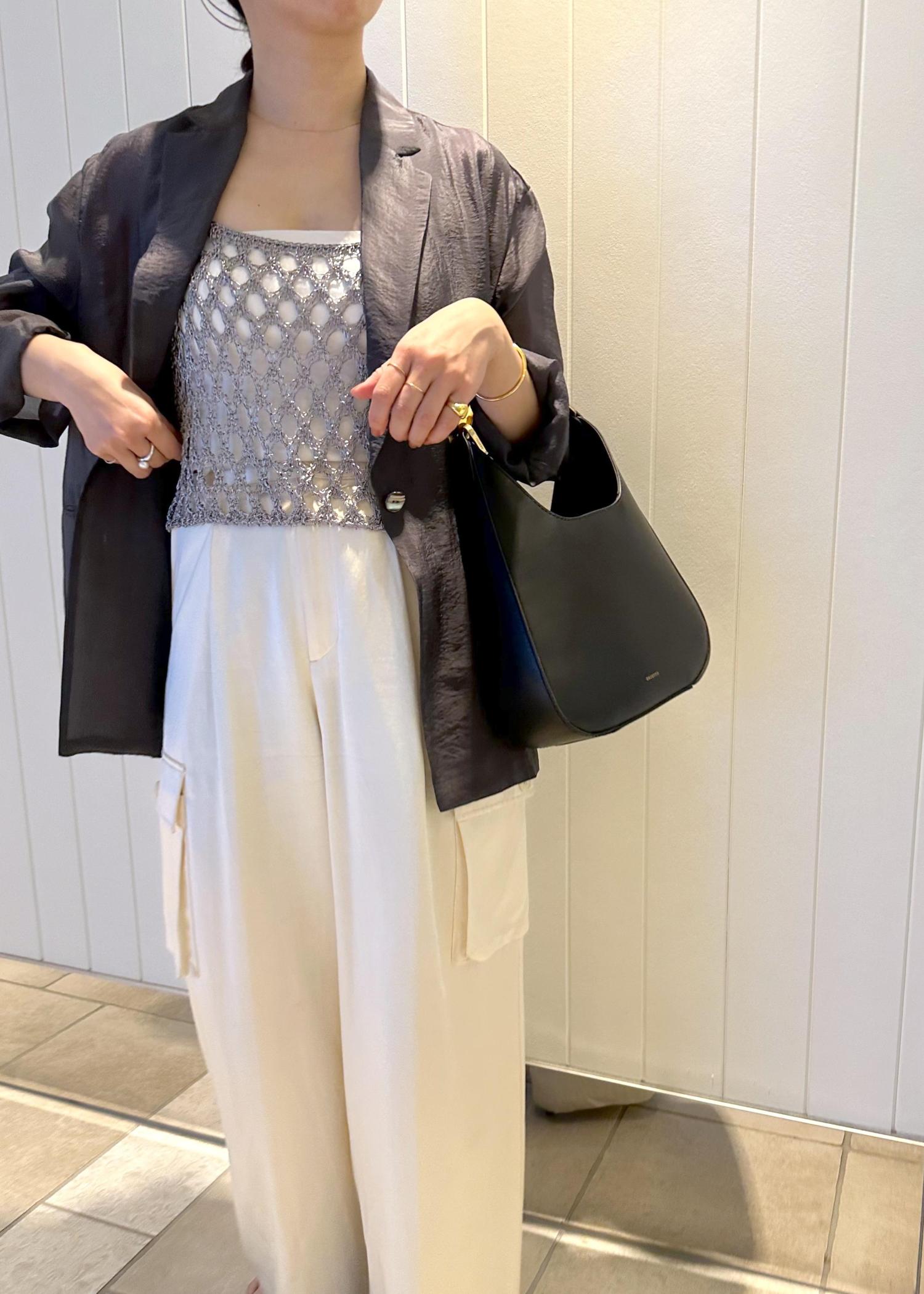ROPÉラメコードメッシュキャミソール/洗えるシルバー / F¥16,500レビュー身幅にゆとりがあるのでシャツの上にレイヤードもできました⚪︎