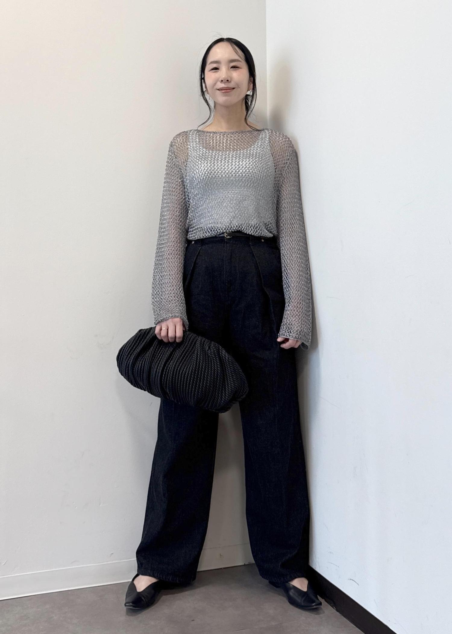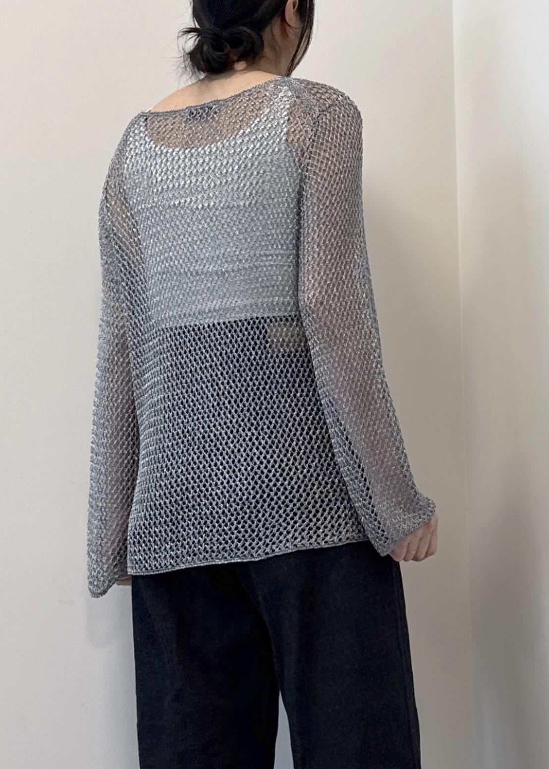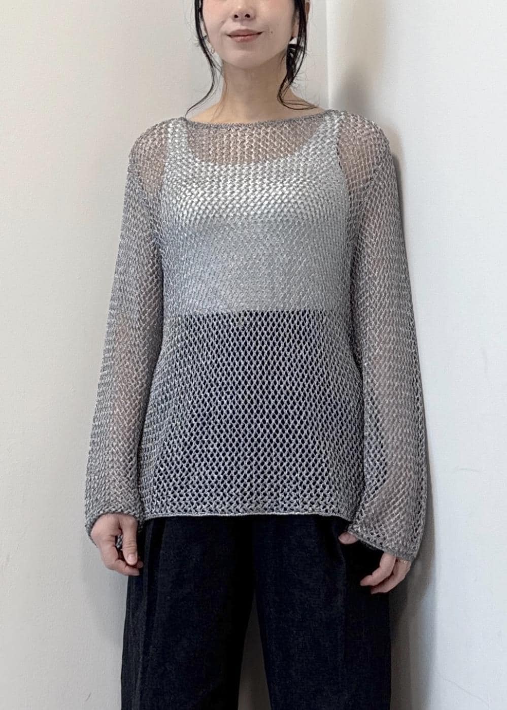 アウトレットROPÉラメコードメッシュプルオーバー/洗えるシルバー / F¥13,200レビュー162㎝ Fサイズ着用