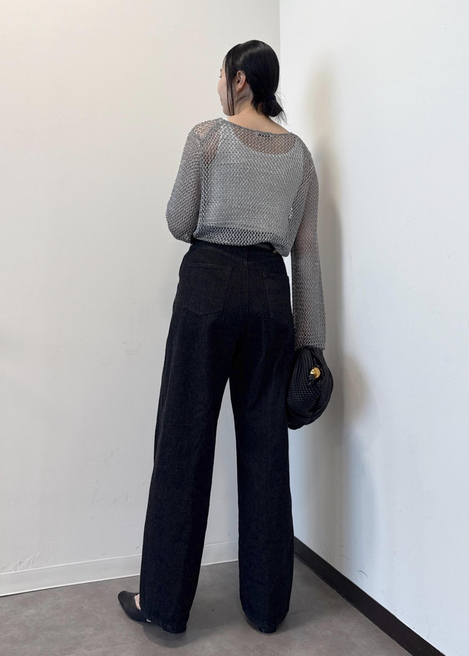 ROPÉ【洗える】ワンタック ワイドデニムパンツブラック / 38¥27,500レビュー162㎝ 38サイズ着用