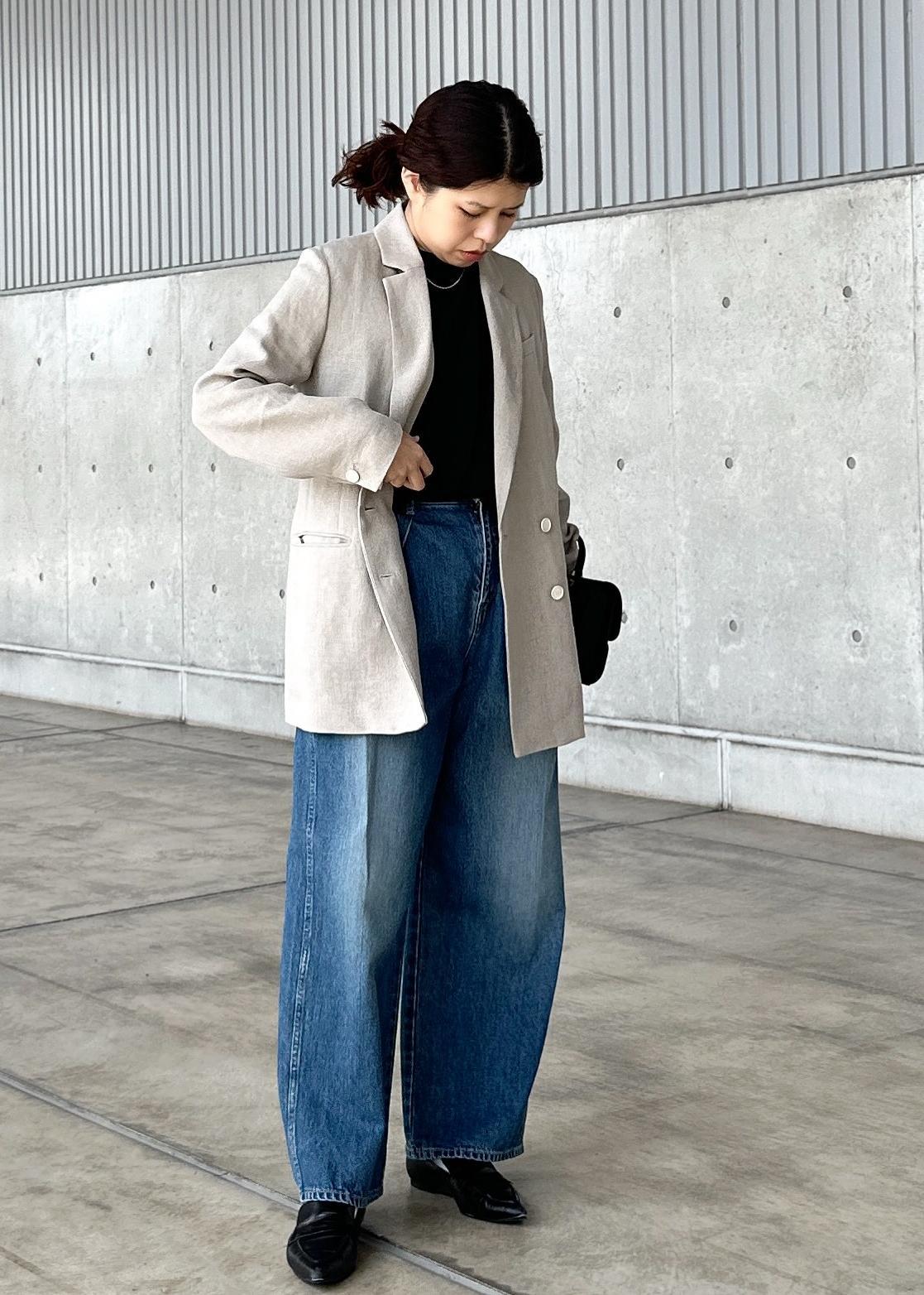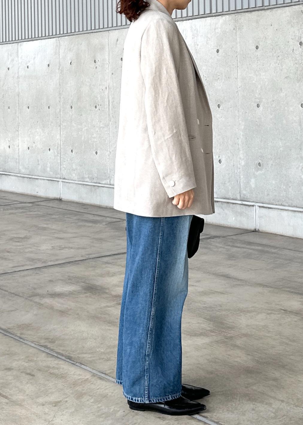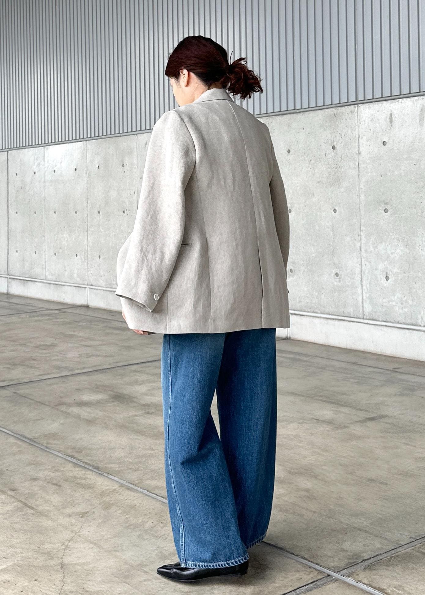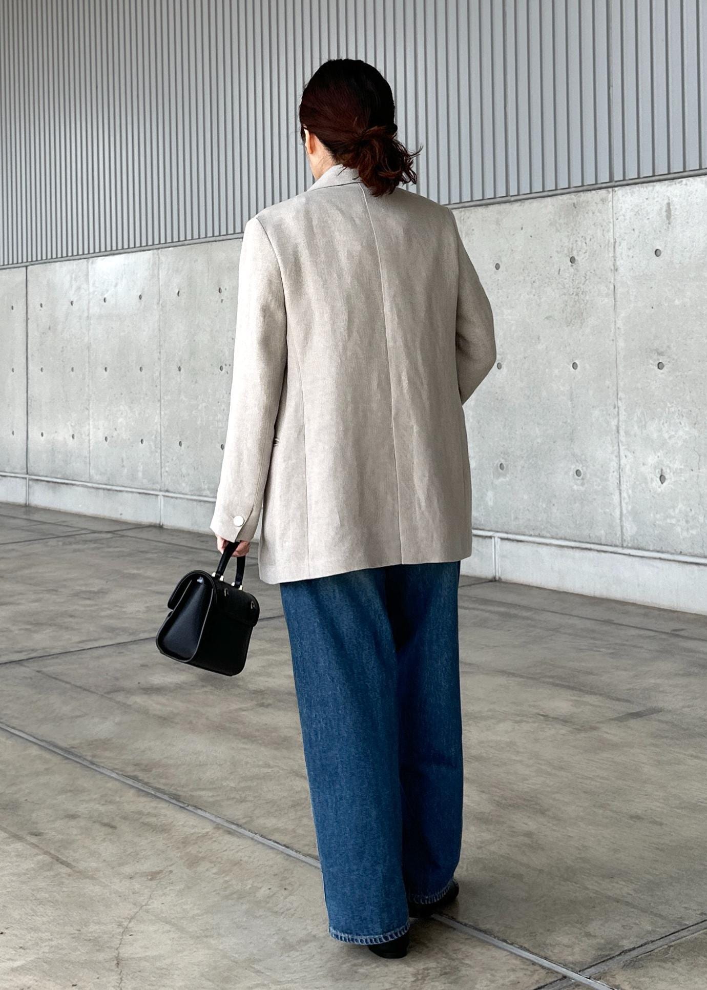 ゆったりしたサイズでリラックス感があるジャケットです。尾州リネン100%ですが柔らかく、しなやかな風合いでサクッと普段でもお出かけでも羽織っていただきやすいです。ヒップがしっかり隠れる丈ですが、ボックスシルエットで広がらずボトムを選ばない逸品です。 -