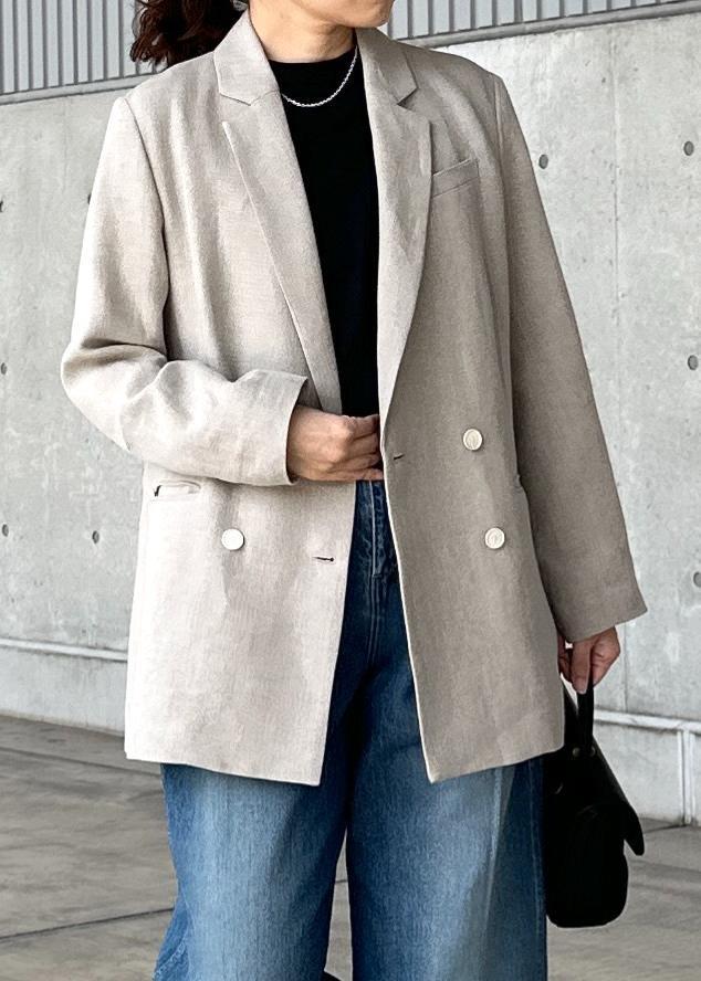 アウトレットROPÉ尾州リネンダブルブレストジャケットベージュ / 38¥31,900レビュー身長161㎝で普段38サイズを着用。
