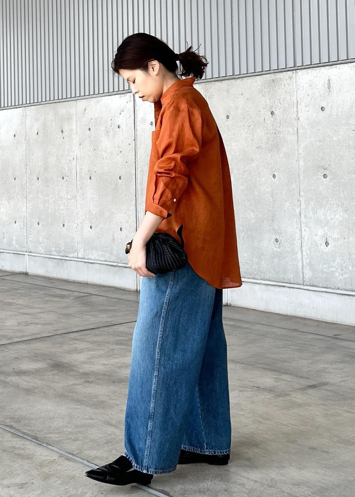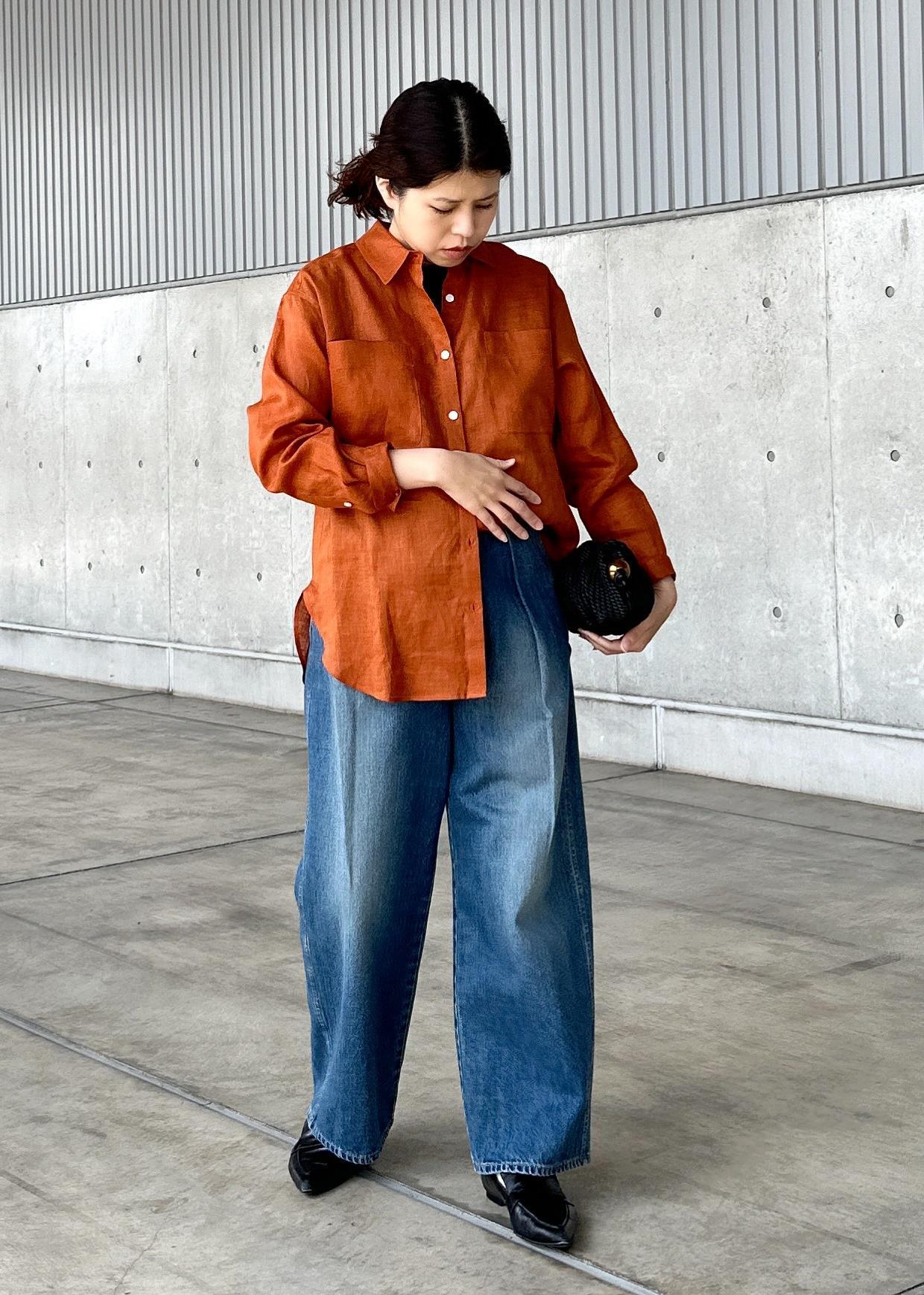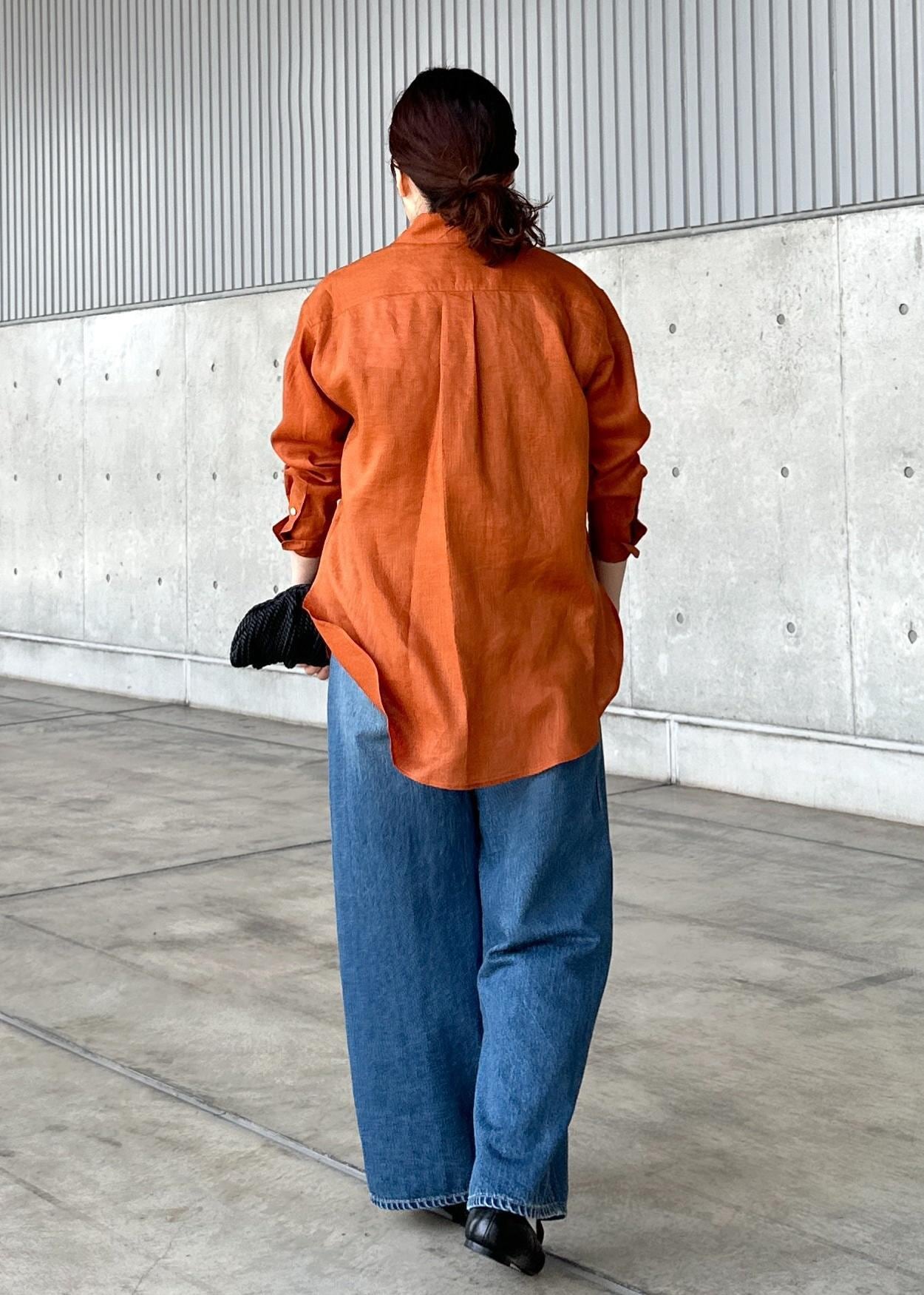 程よいゆとりのサイズ感で、羽織りとしても着やすいです。後ろ身頃はヒップが隠れる丈感なので細身のボトムとも合わせていただきやすい夏にたくさん着回せるアイテムです。 -