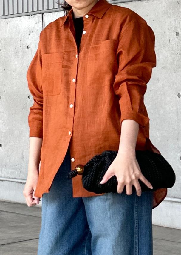 ROPÉ【洗える】ヨーロピアンリネンベーシックシャツ/一部セットアップ対応ブラウン / F¥25,300レビュー身長161㎝で普段38サイズを着用。