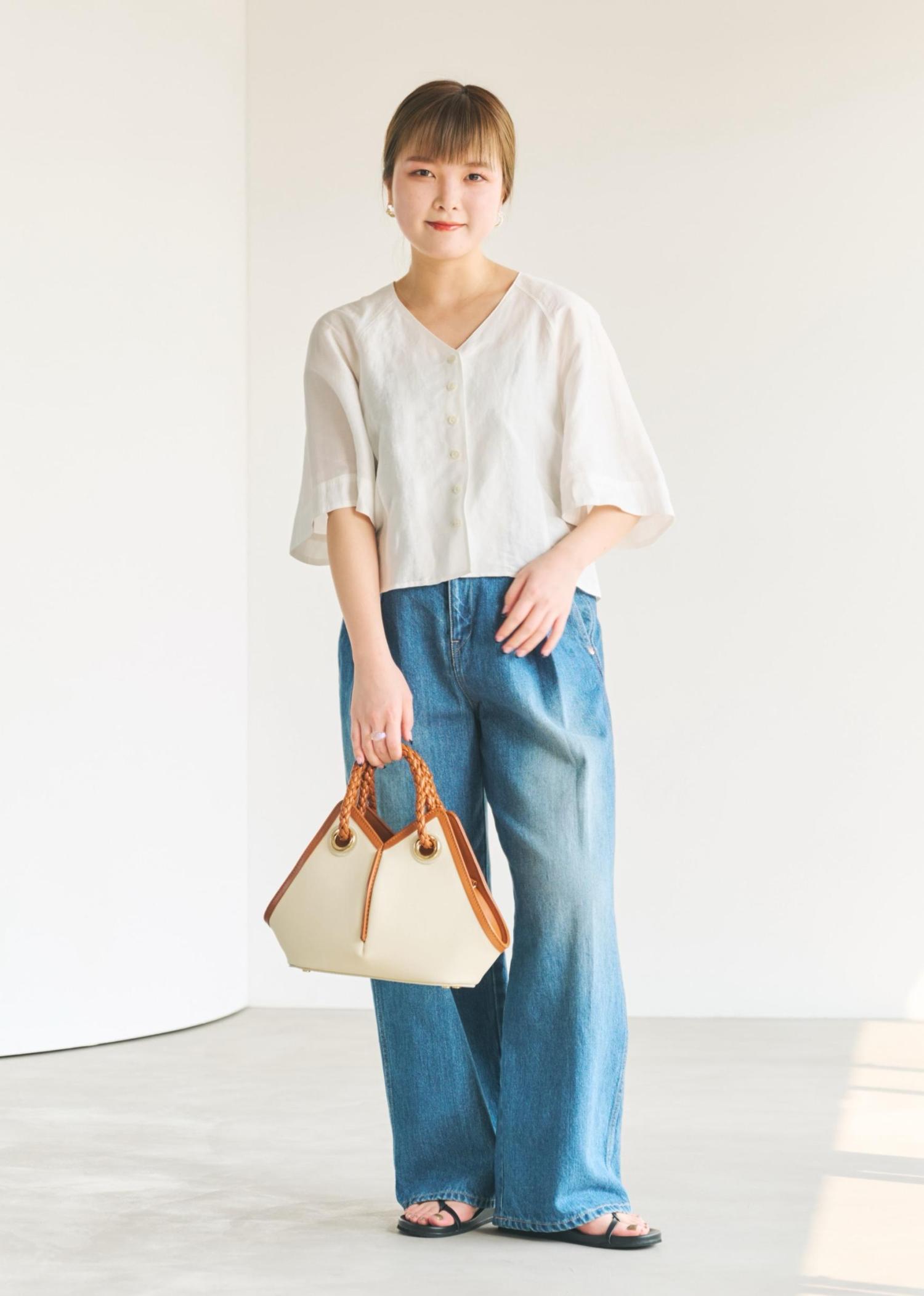 ROPÉ【洗える】ワンタック ワイドデニムパンツブルー / 38¥27,500レビュー38サイズ着用で着丈もウエストも